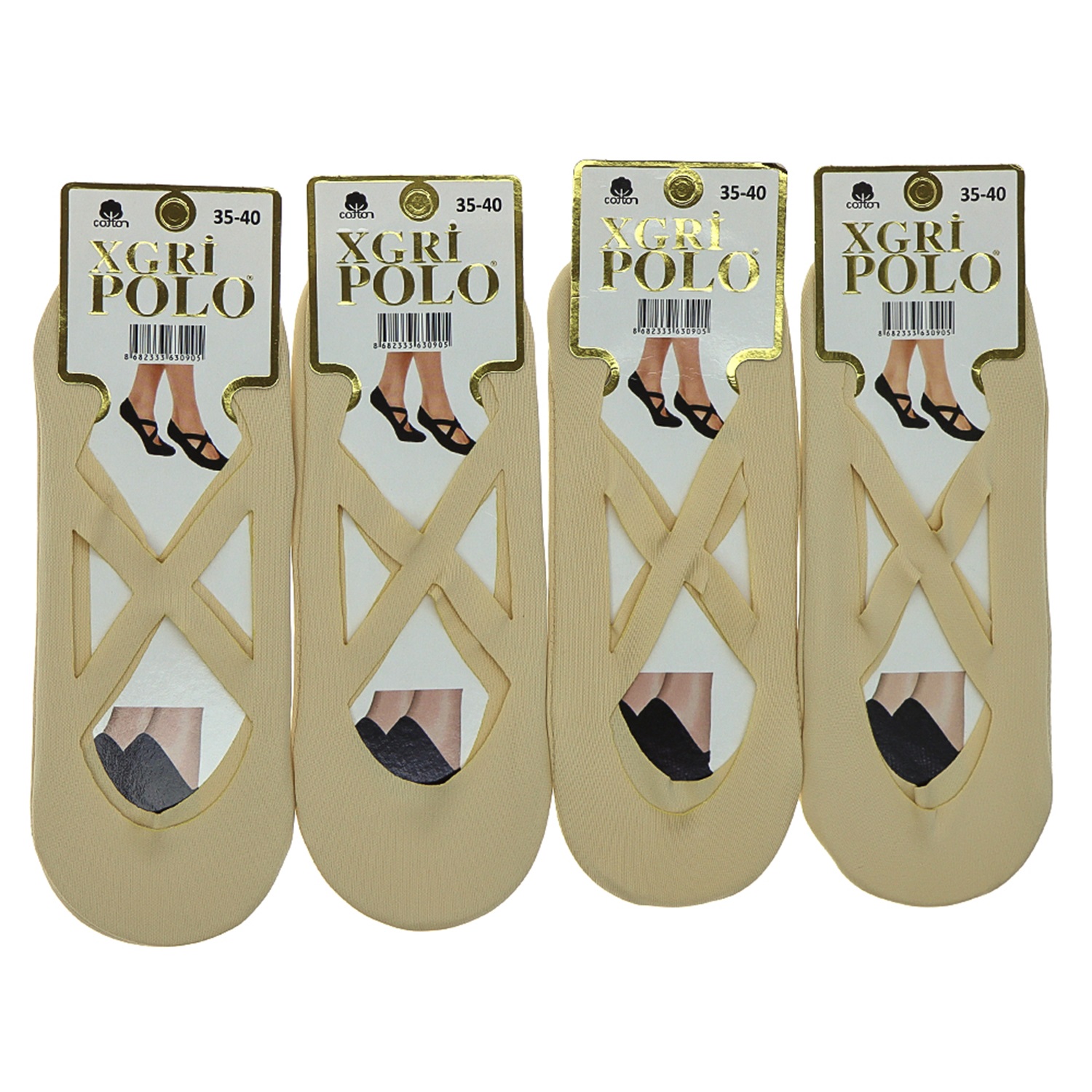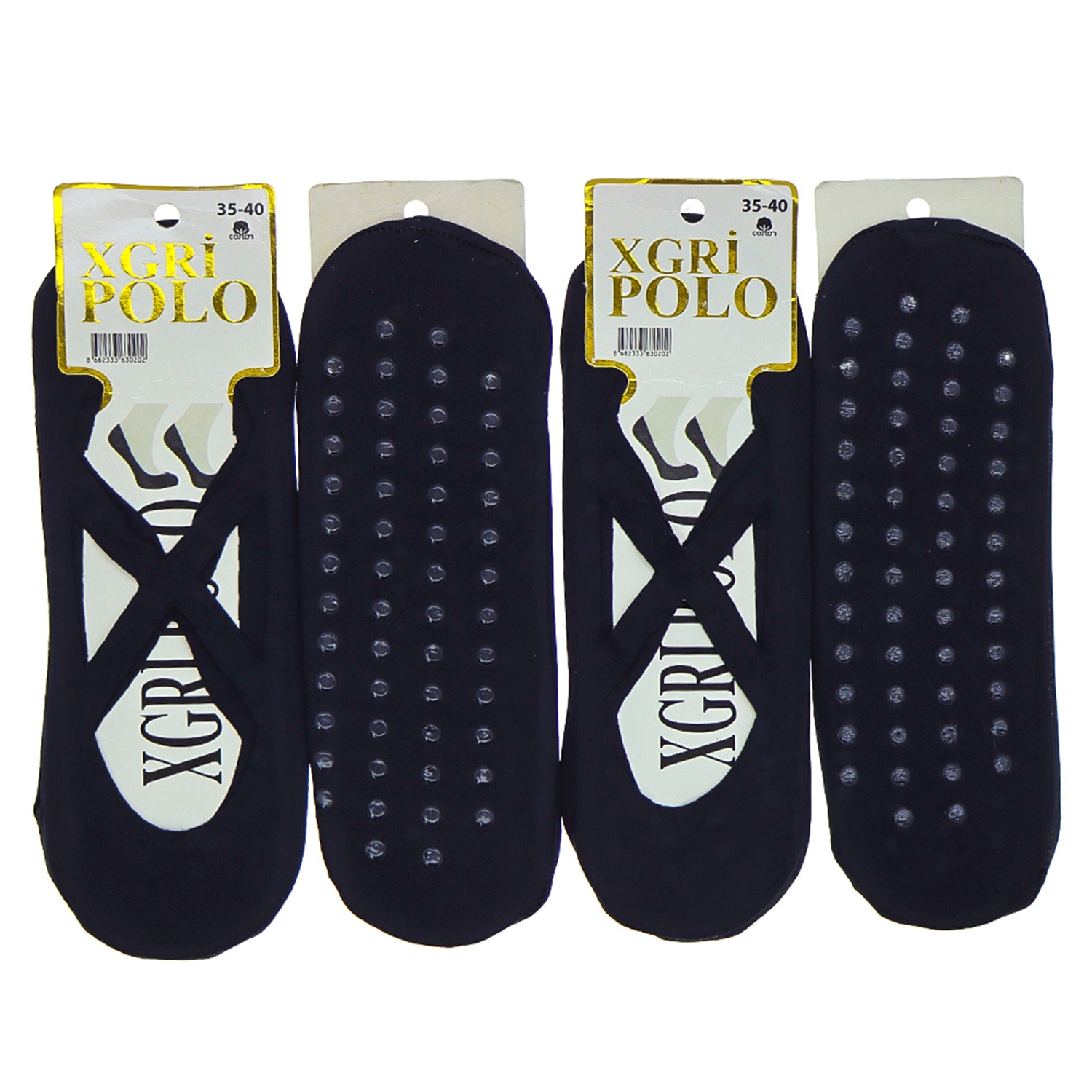 X Gri Polo B-61 Bayan Likralı Silikonlu Kaymaz Plates Babet Çorap