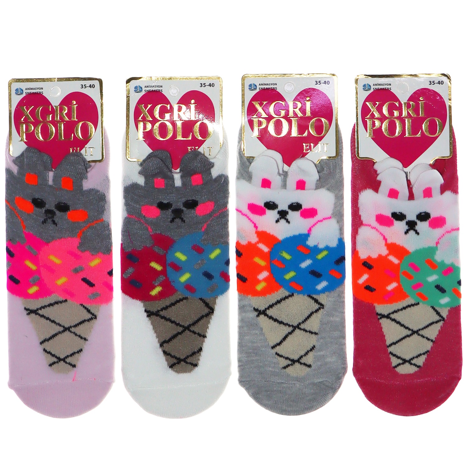 Polo Bayan Üç Boyutlu Likralı Animasyon Babet Çorap