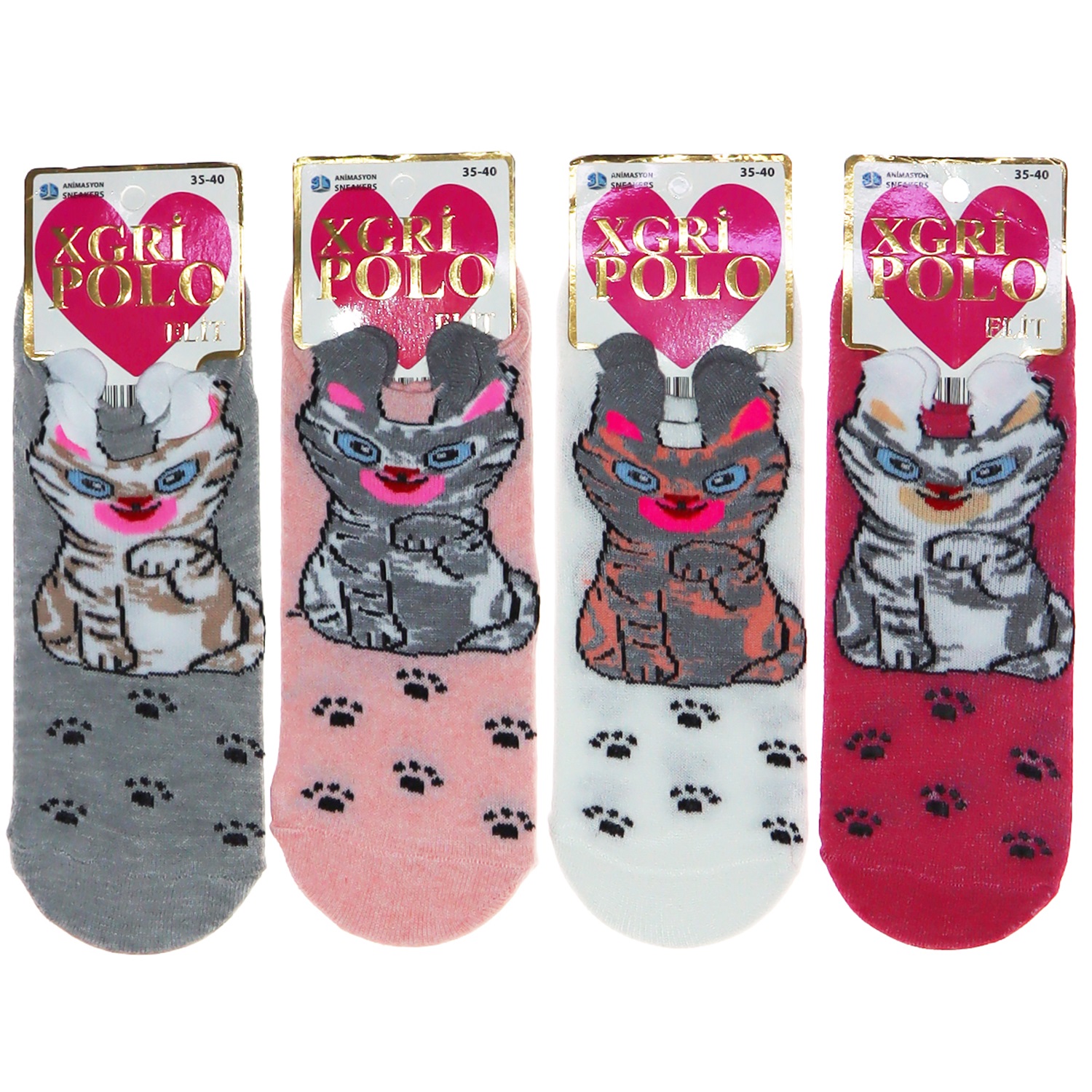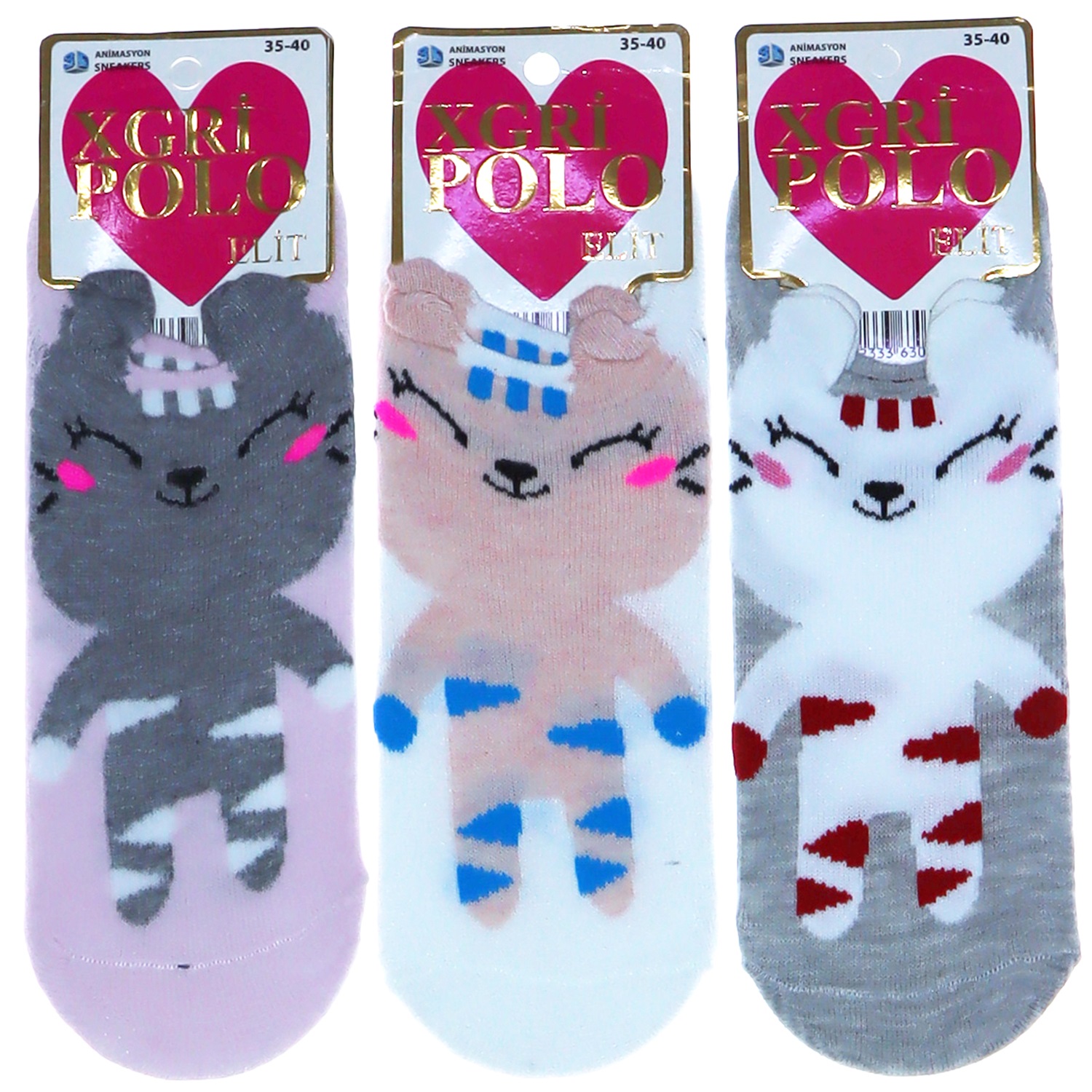 Polo Bayan Üç Boyutlu Likralı Animasyon Babet Çorap