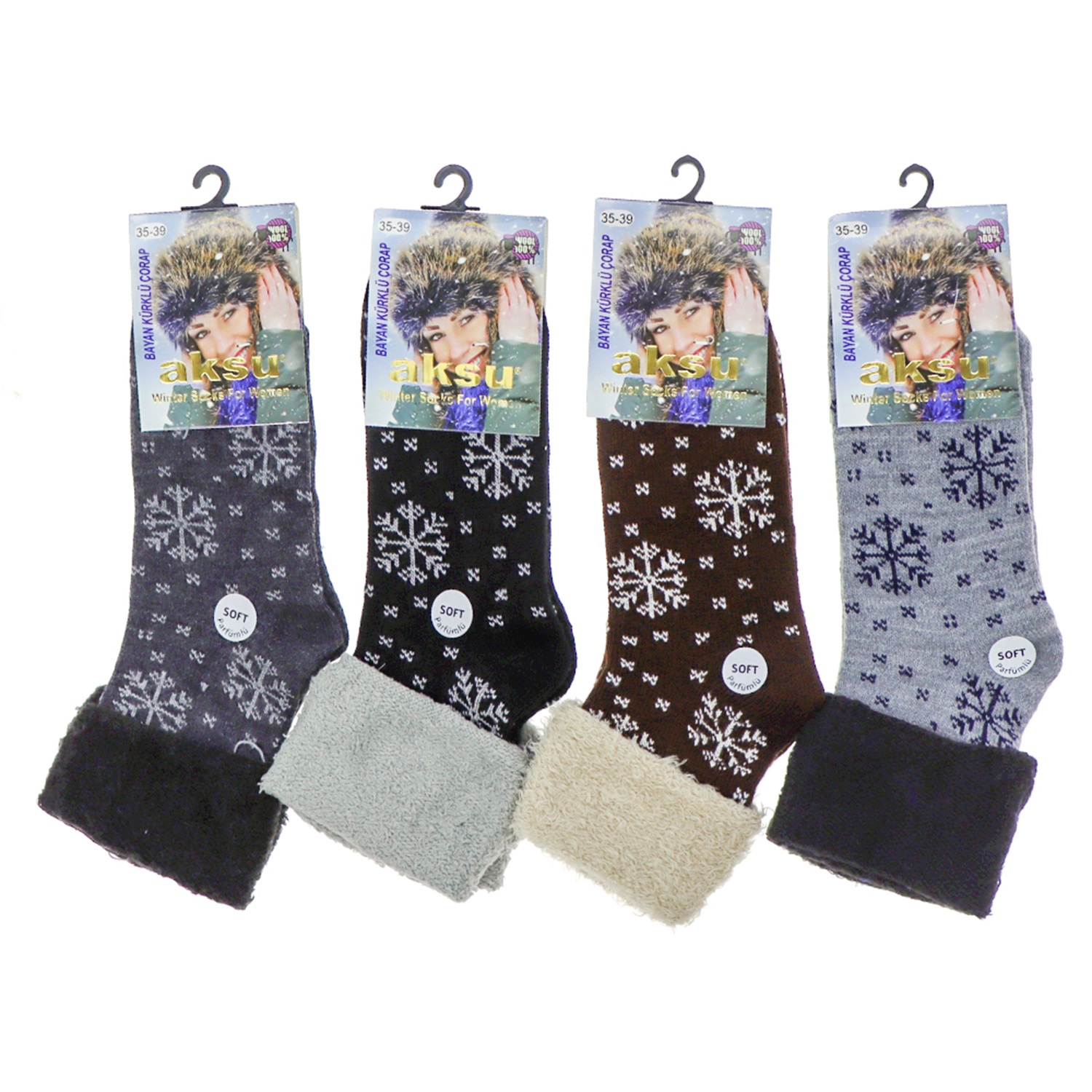 Aksu Bayan Desenli Soft Parfümlü Kürklü Havlu Patik Çorap