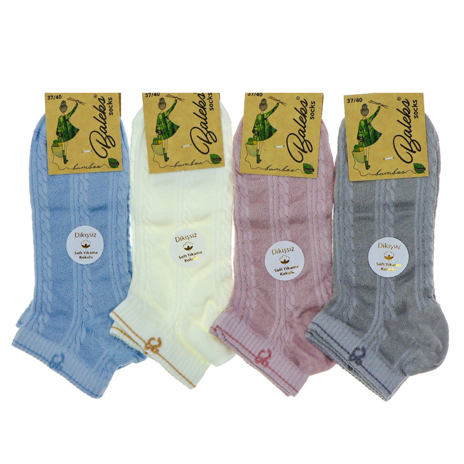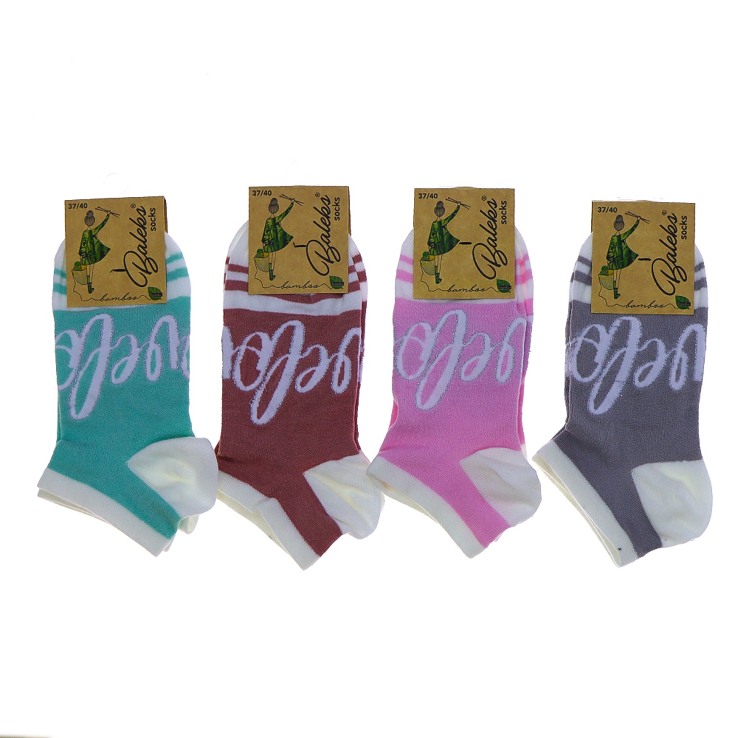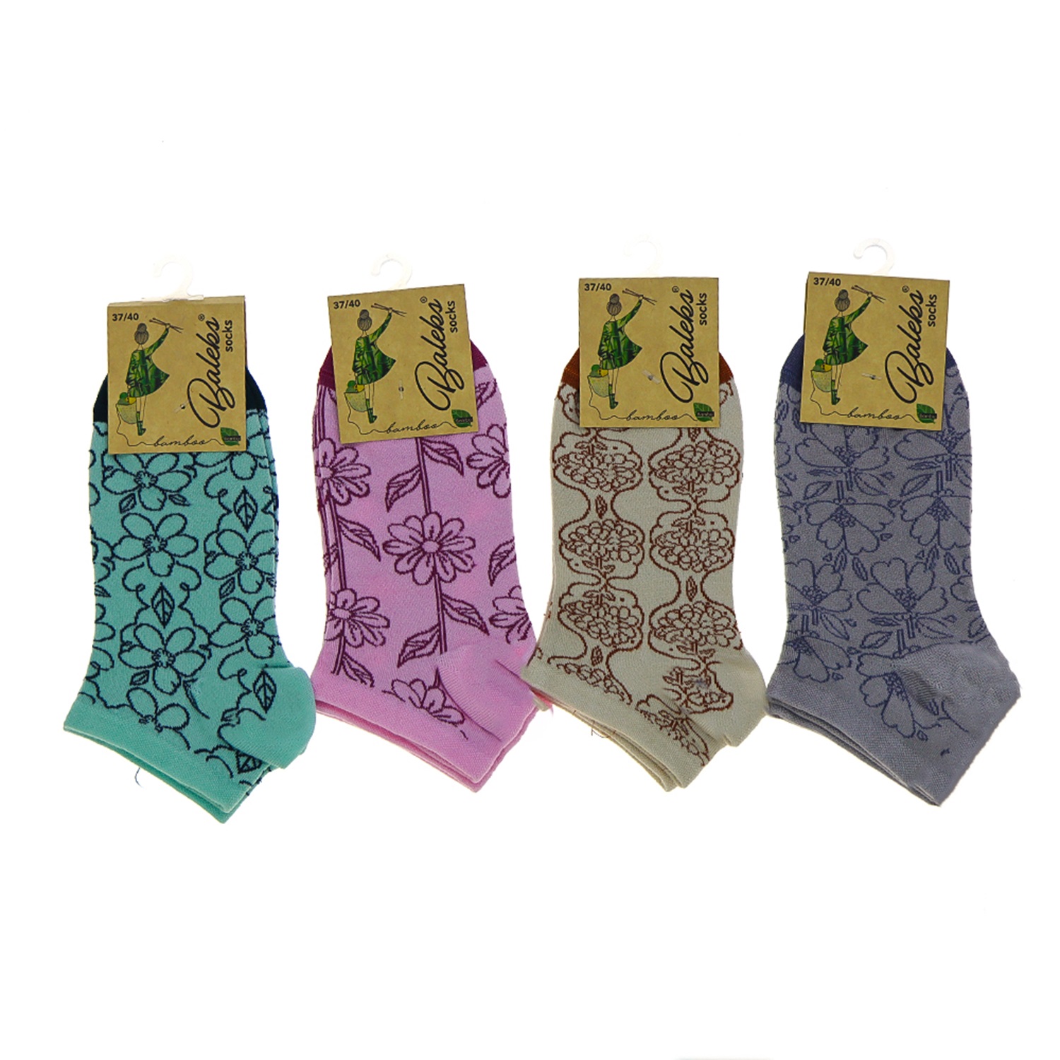 Baleks 7732 Bayan Bambu Dikişsiz Likralı Desenli Kutulu Patik Çorap