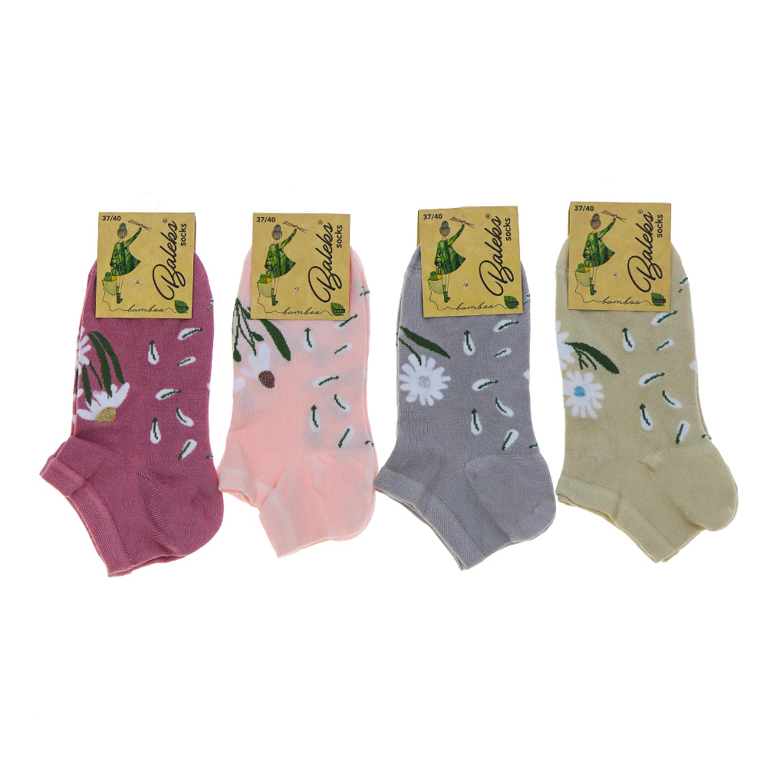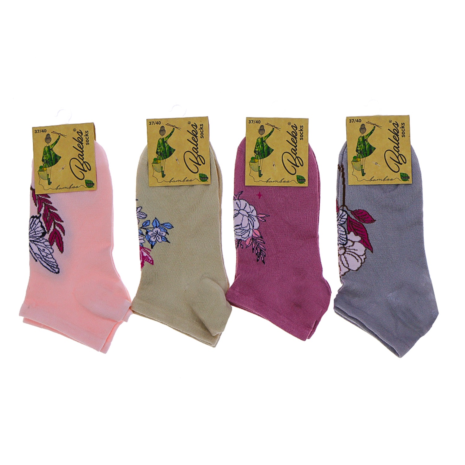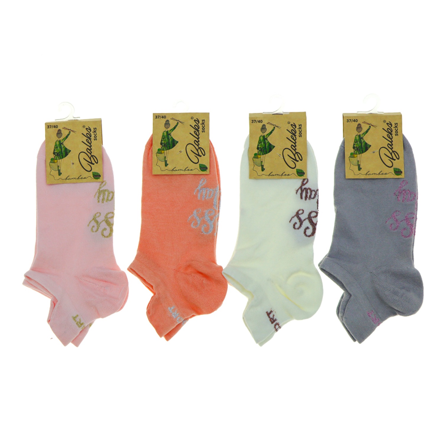 Baleks 7732 Bayan Bambu Dikişsiz Likralı Desenli Kutulu Patik Çorap