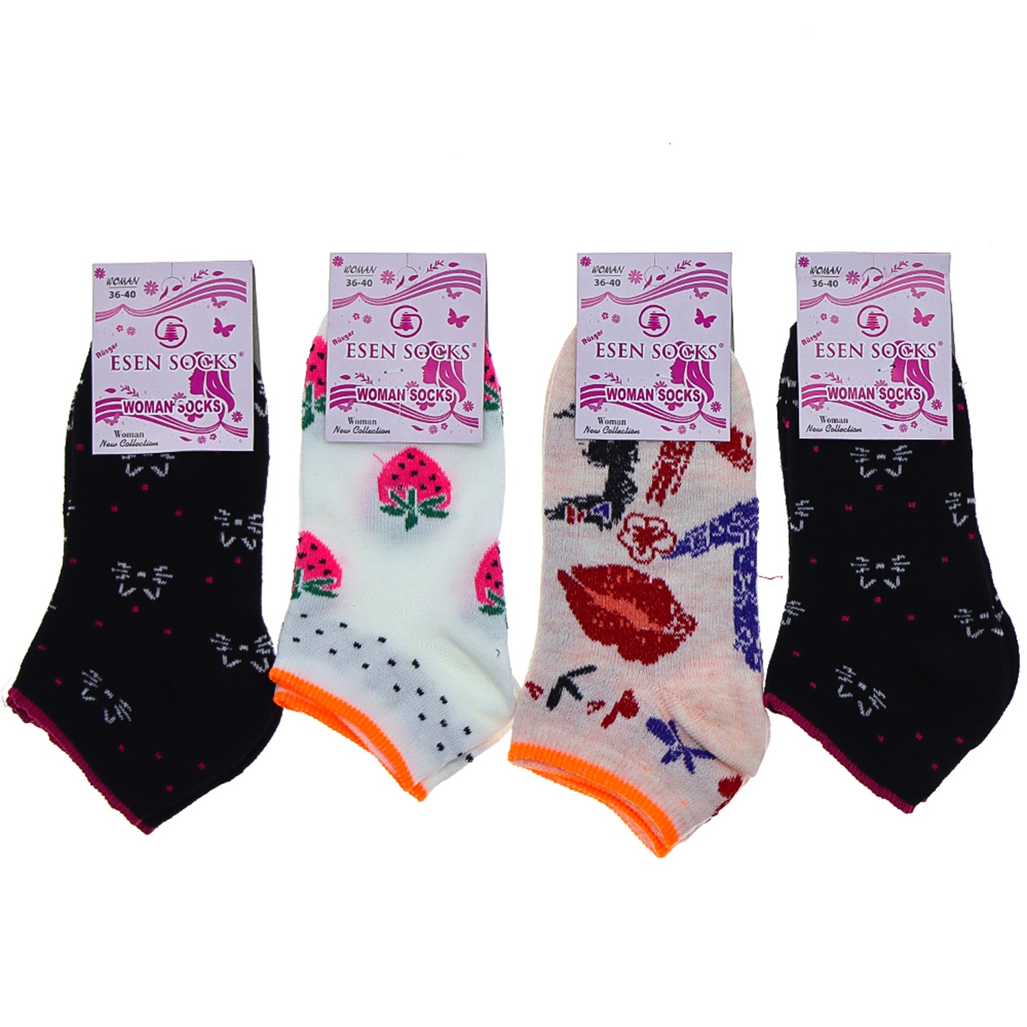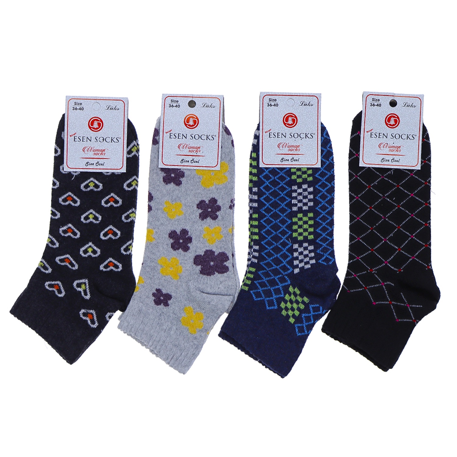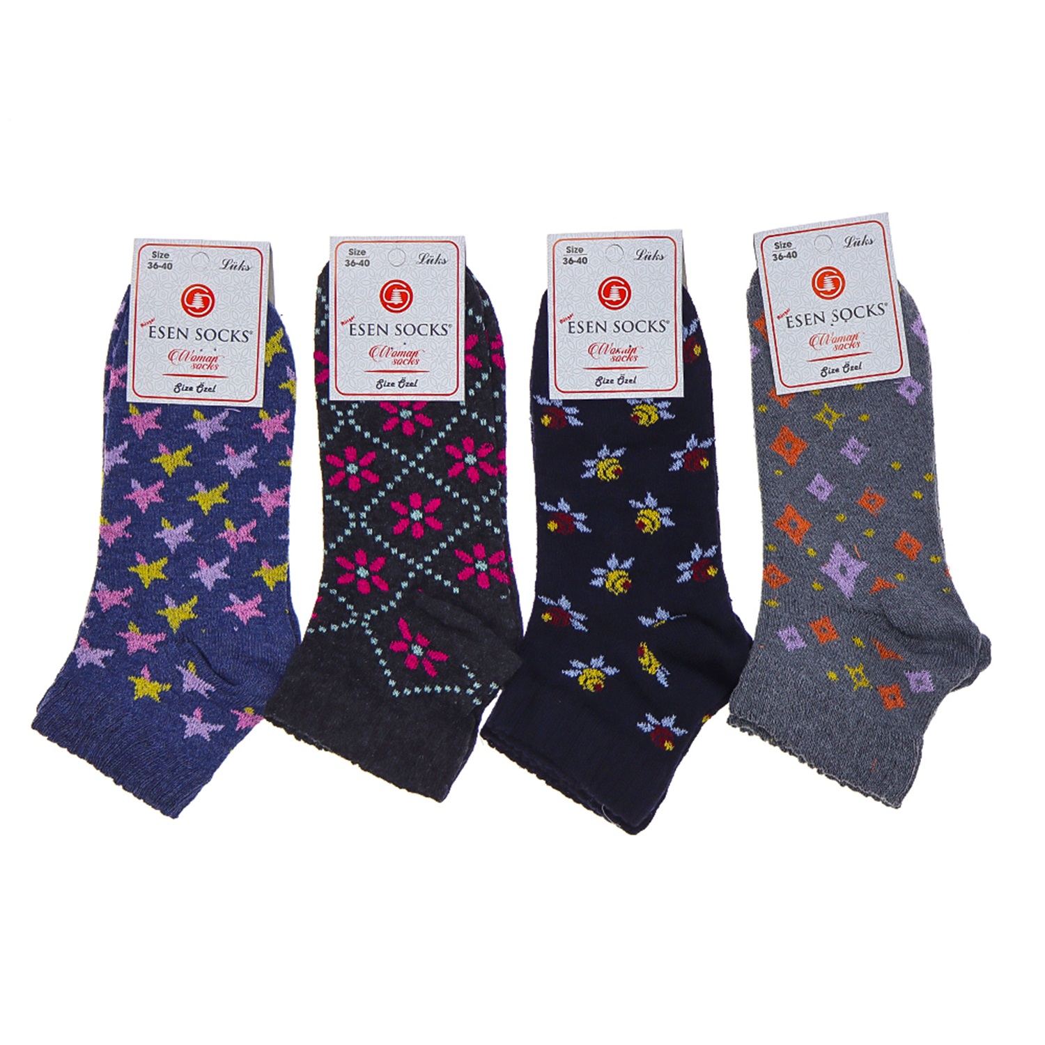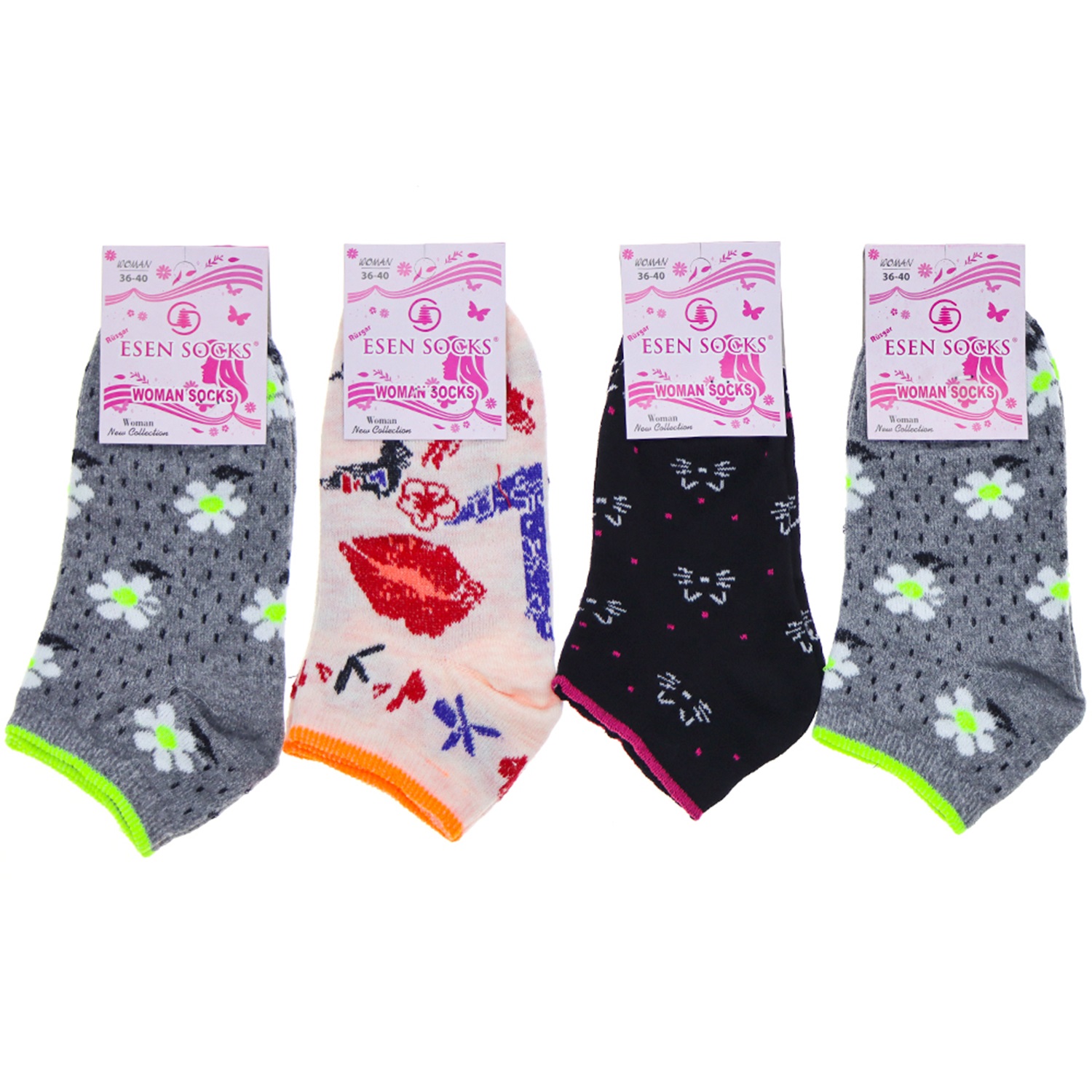 Esen Bayan Bilgisayarlı Desenli Likralı Patik Çorap