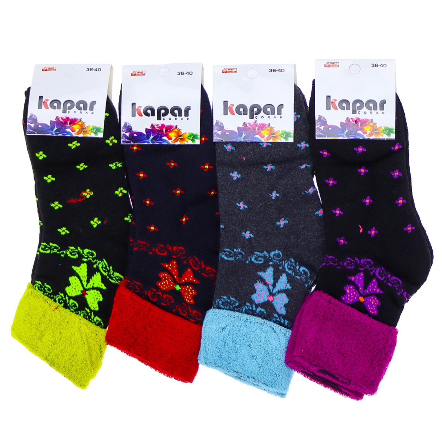 Kapar Bayan Kıvrık Desenli Havlu Patık Çorap