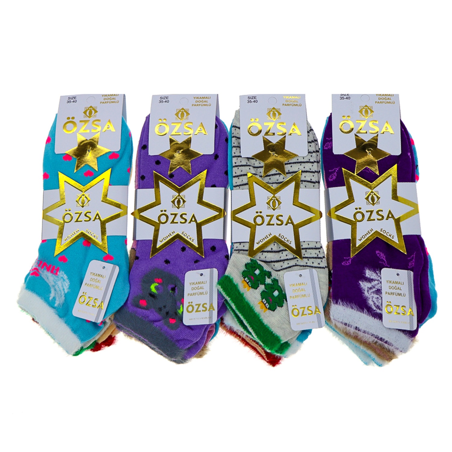 Özsa 3544 2097 Bayan Penye Desenli Likralı 3 Lü Tüylü Patik Çorap