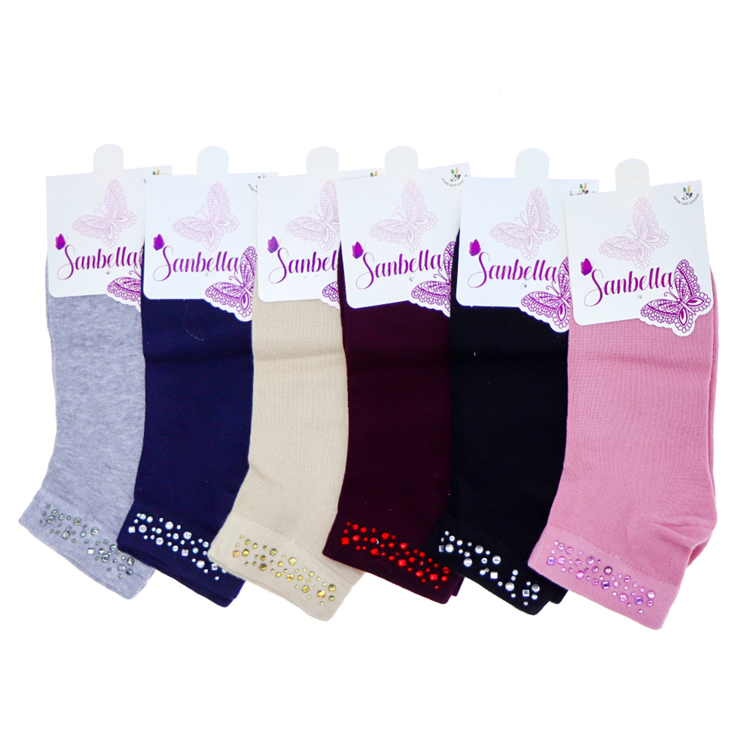 Sanbella 32323 Bayan Likralı Taşlı Kısa Patik Çorap