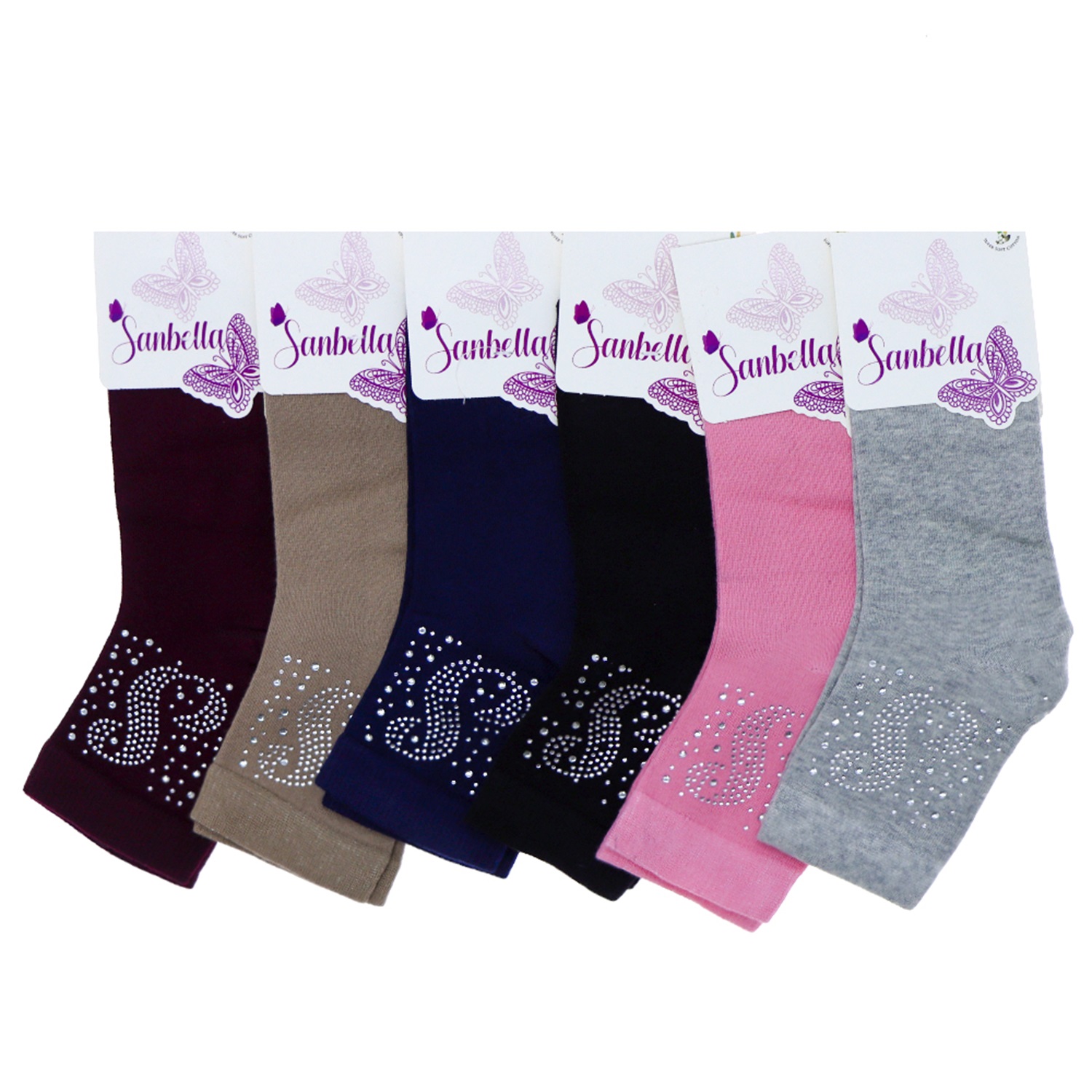 Sanbella 6948 Bayan Likralı Taşlı Yarım Konç Patik Çorap