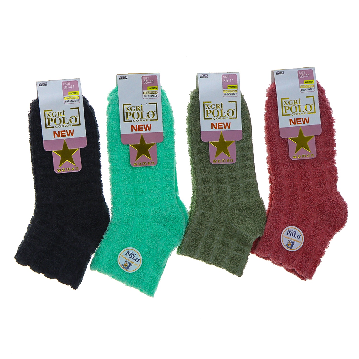 X Gri Polo B-13 Bayan Parfümlü Ters Havlu Patik Çorap