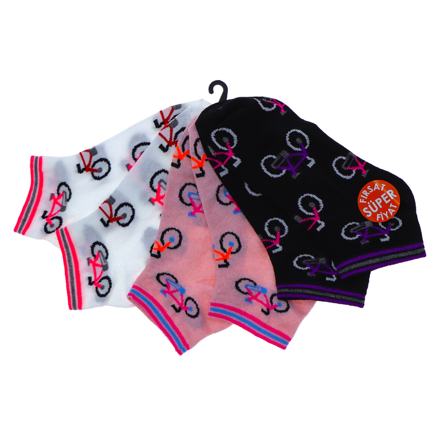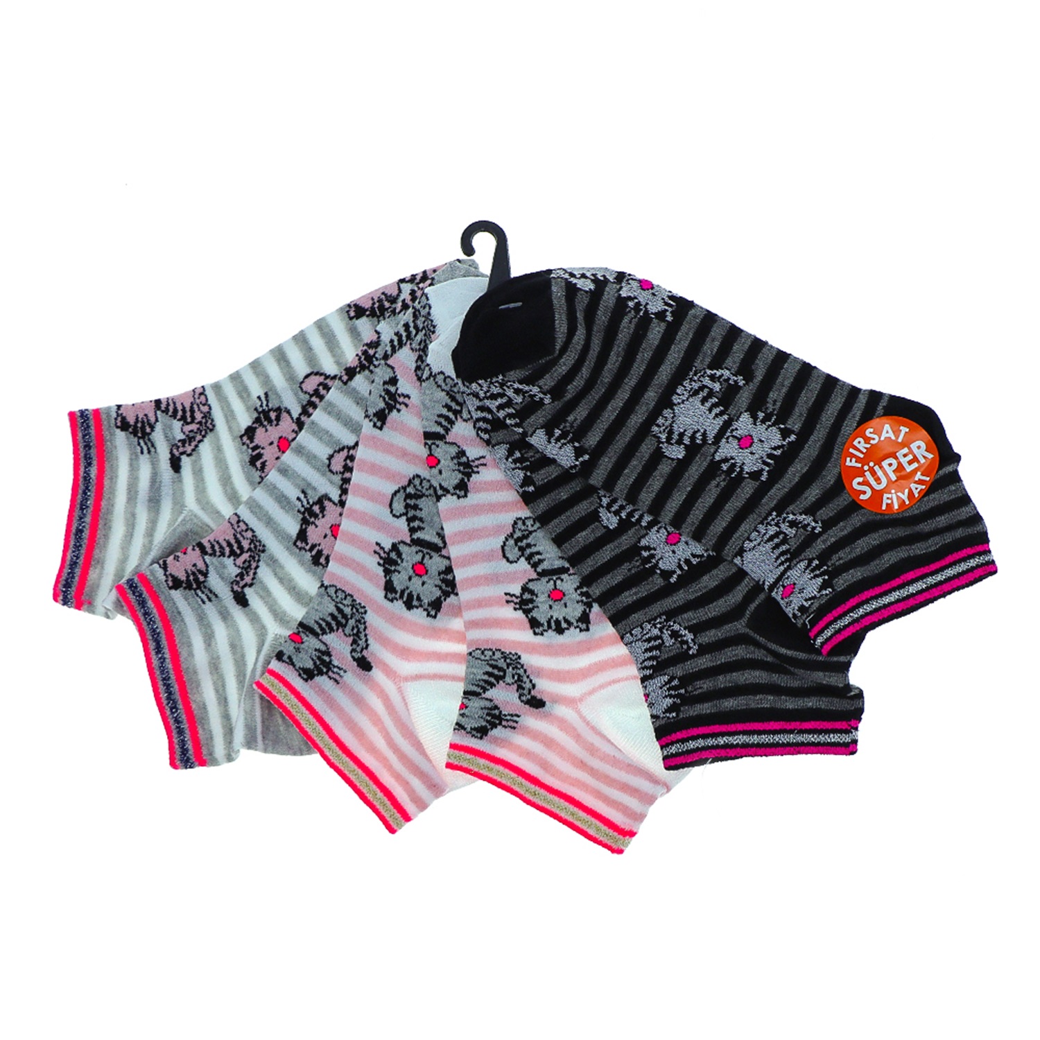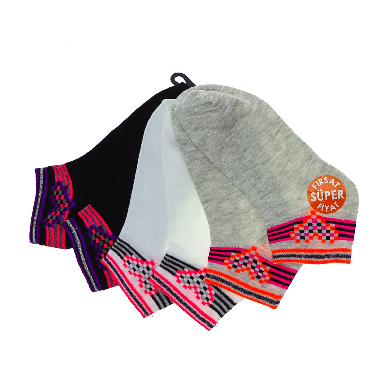 XGri Polo B-7 Bayan Desenli Likralı 3 Lü Patik Çorap