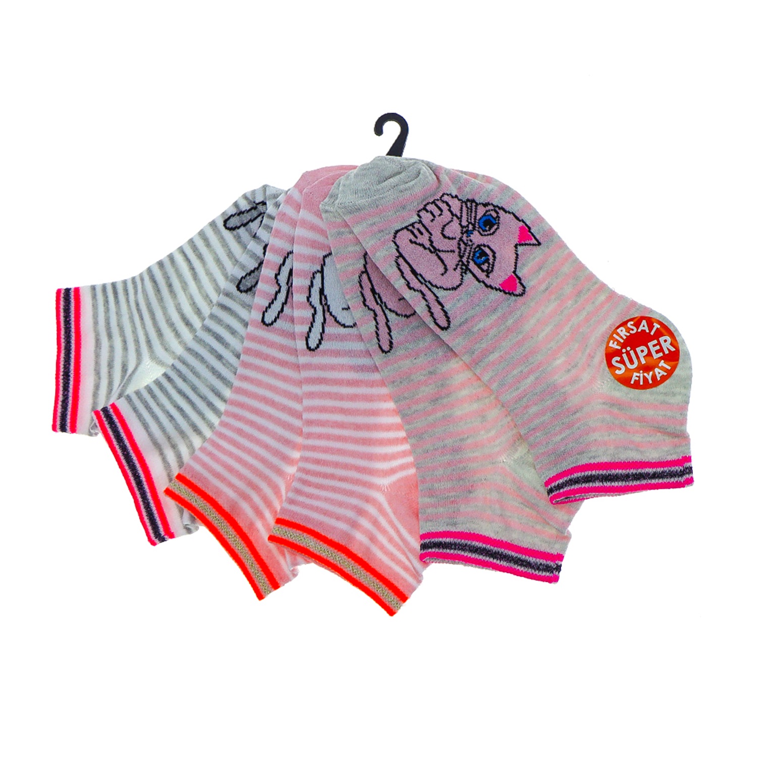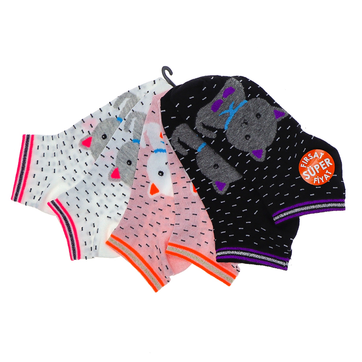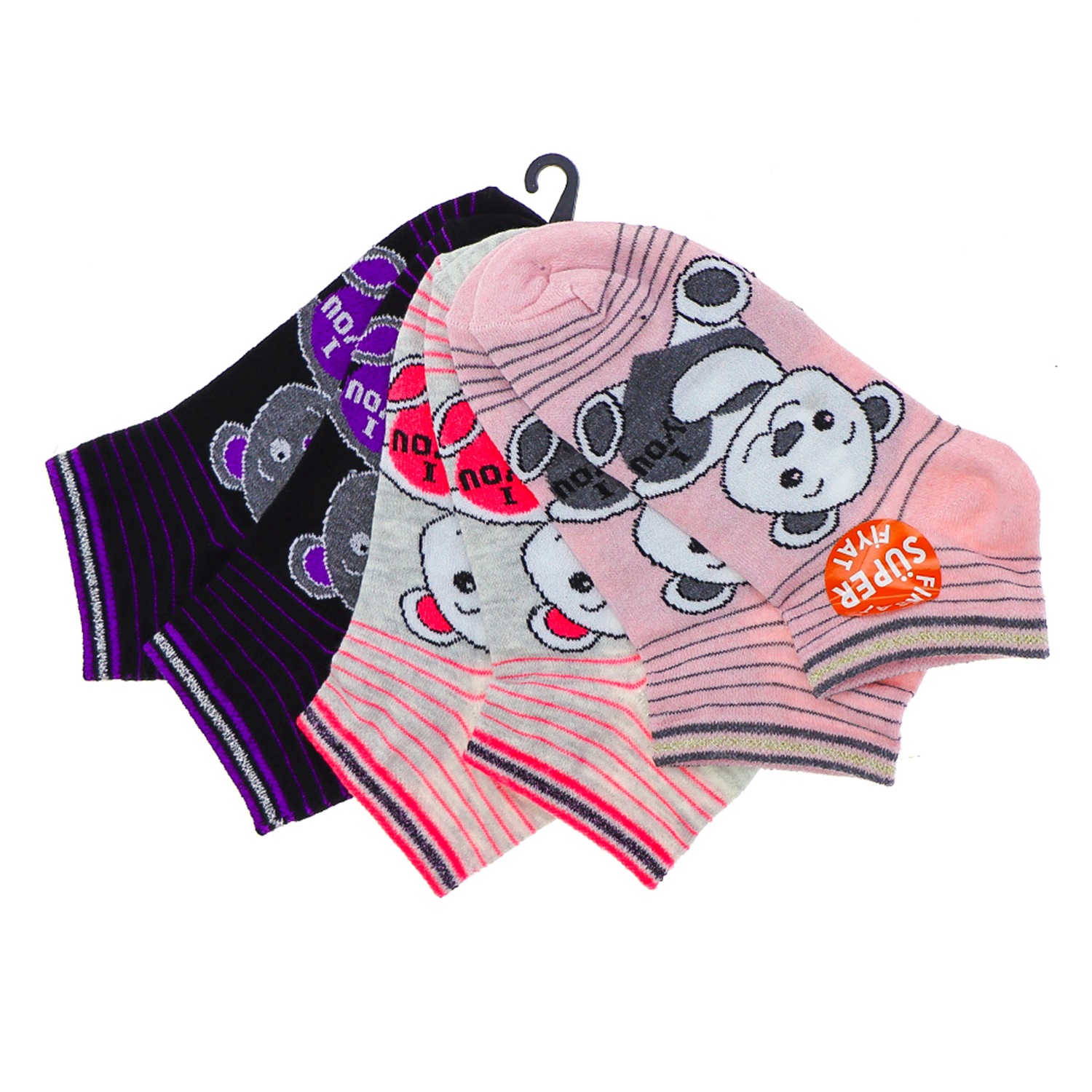 XGri Polo B-7 Bayan Desenli Likralı 3 Lü Patik Çorap