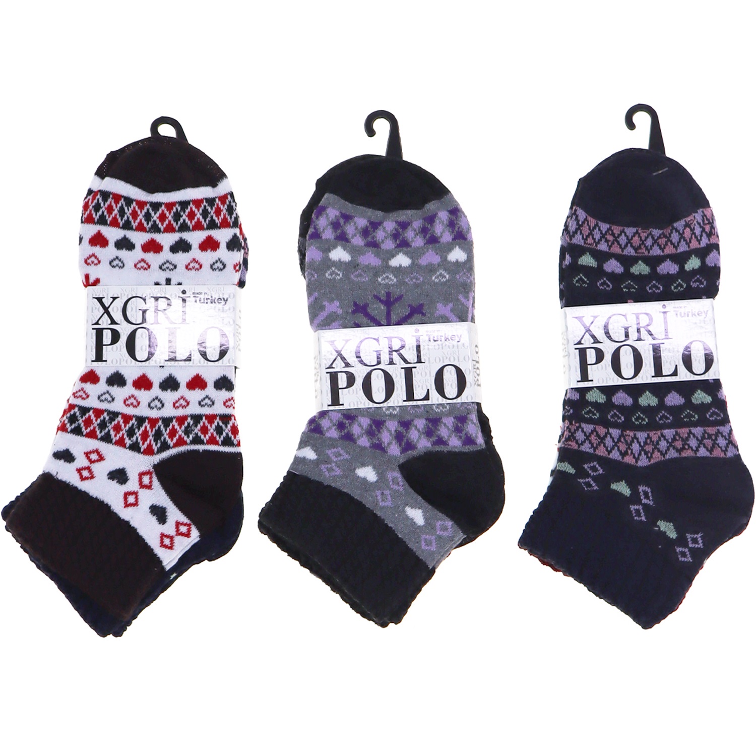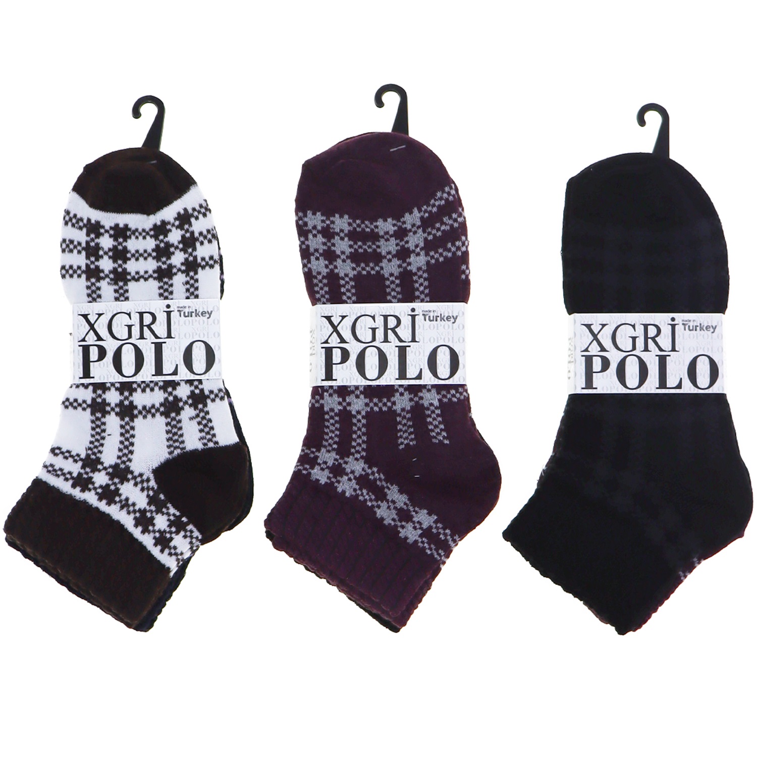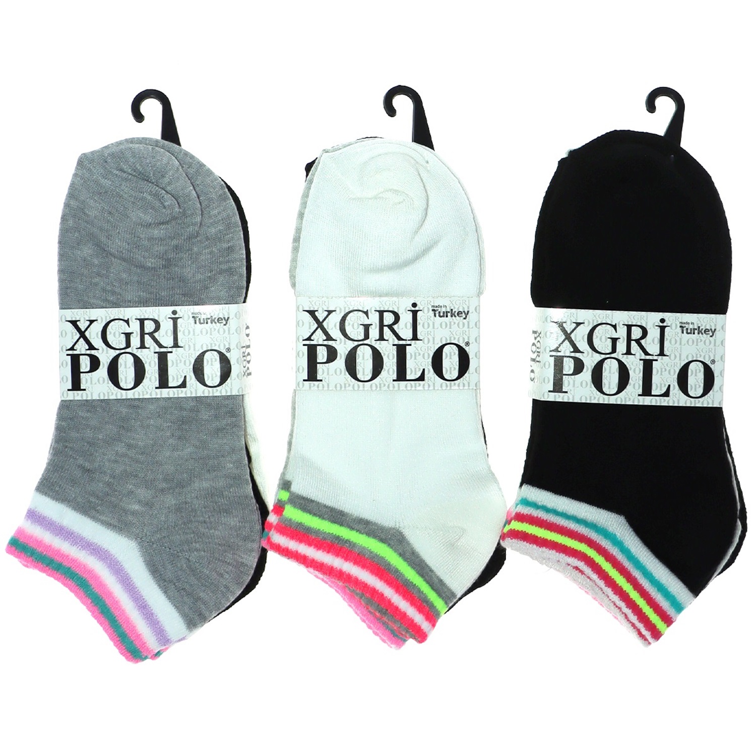 XGri Polo B-7 Bayan Desenli Likralı 3 Lü Patik Çorap