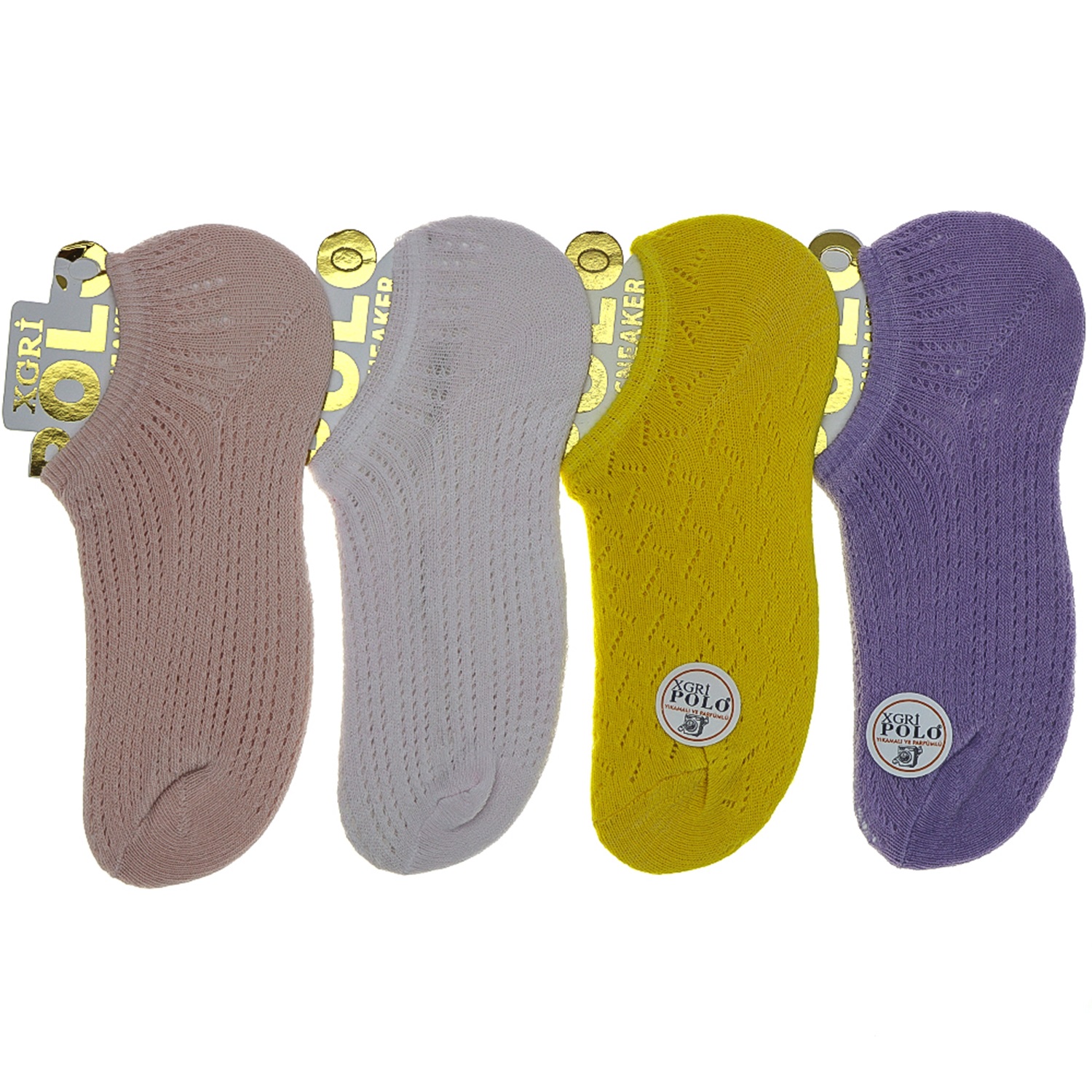 X Gri Polo B-3 Bayan 3 Lü Parfümlü File Sneakers Çorap