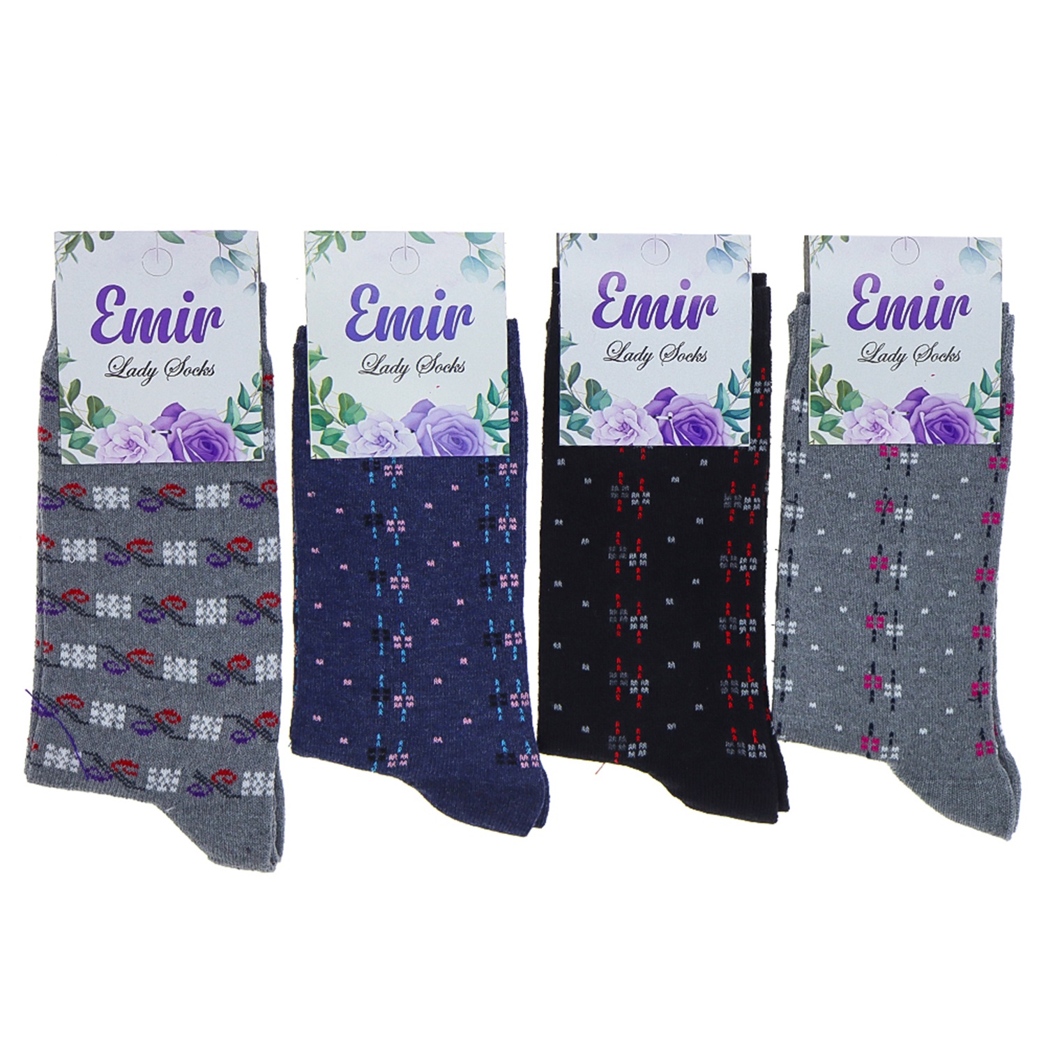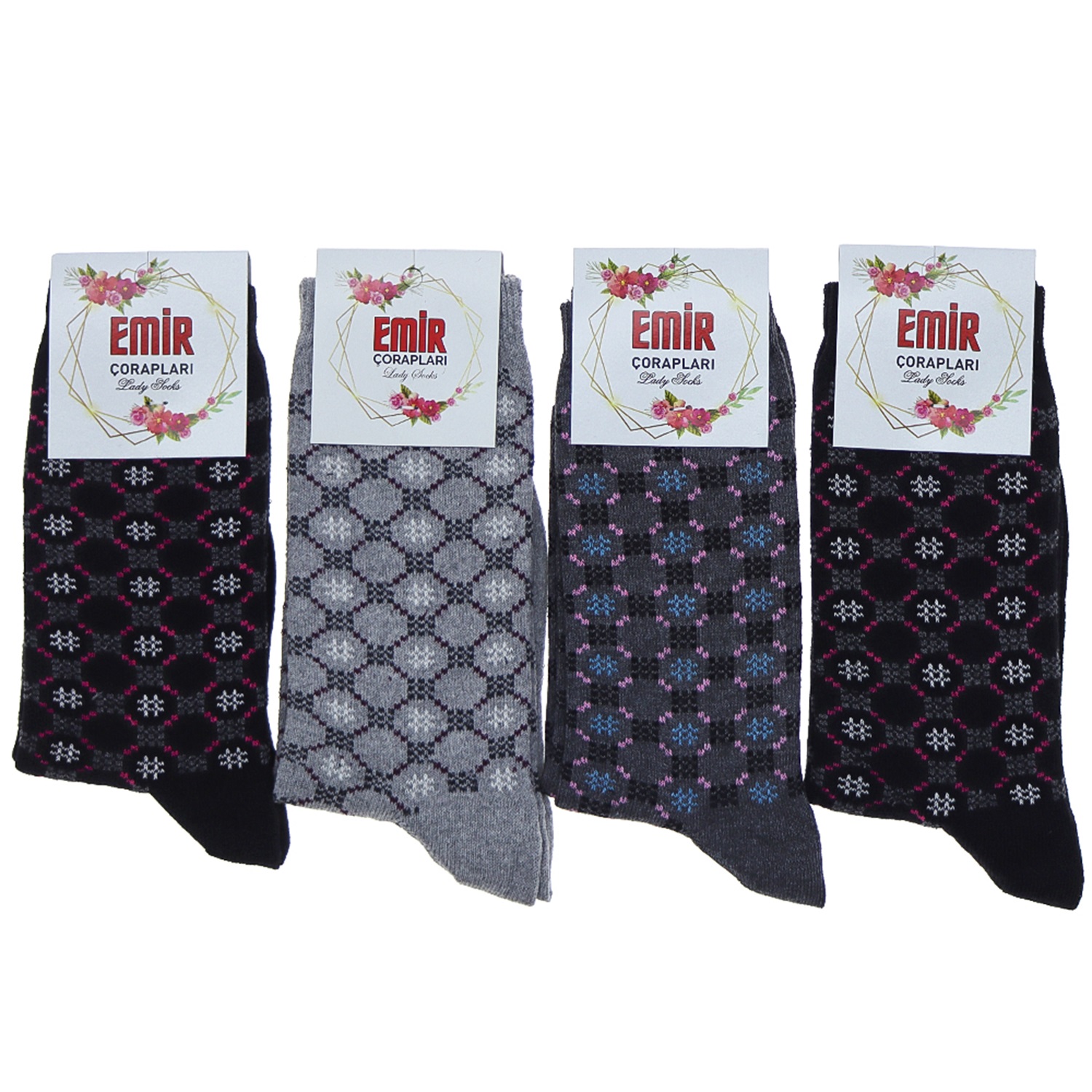 Emir Bayan Likralı Desenli Mevsimlik Soket Çorap