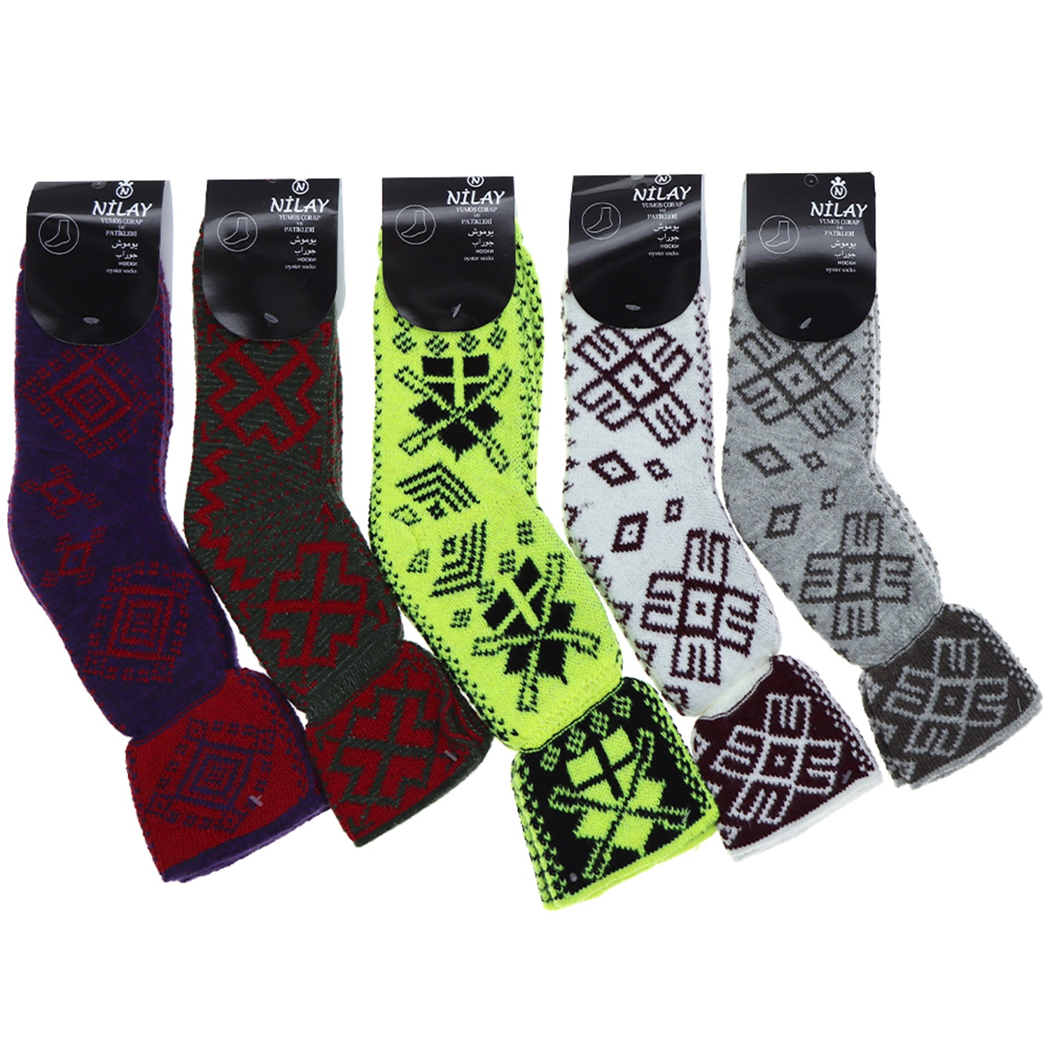 Nilay Bayan Desenli Yün Akrilik Soket Çorap