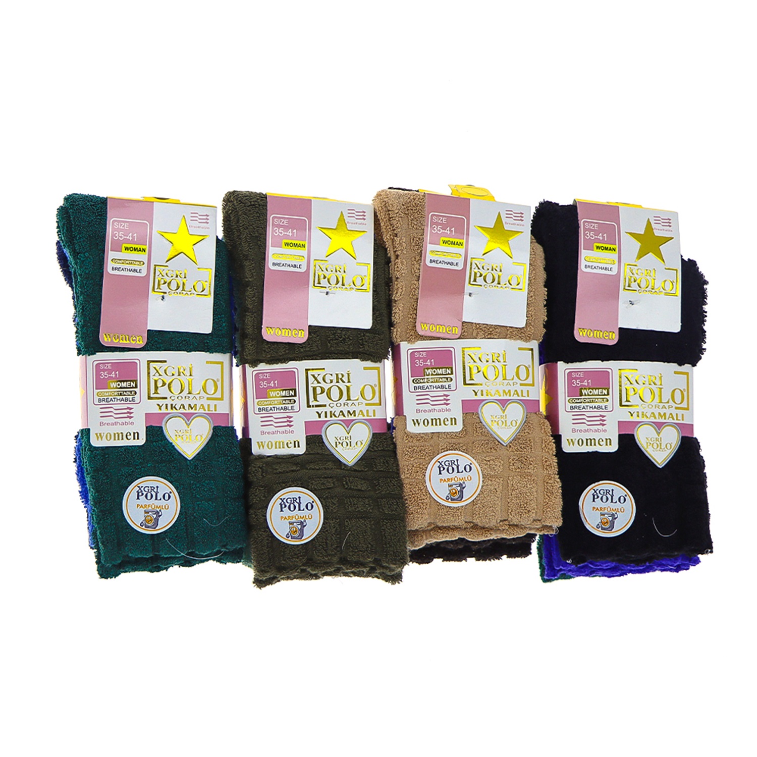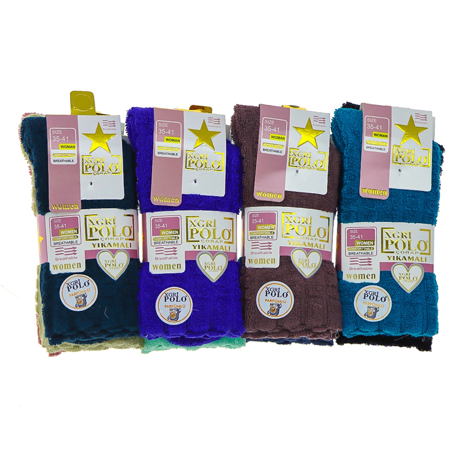 X Gri Polo B-E-14 Bayan Parfümlü Ters Havlu Soket Çorap