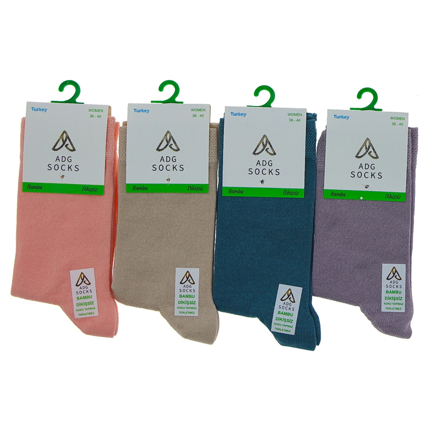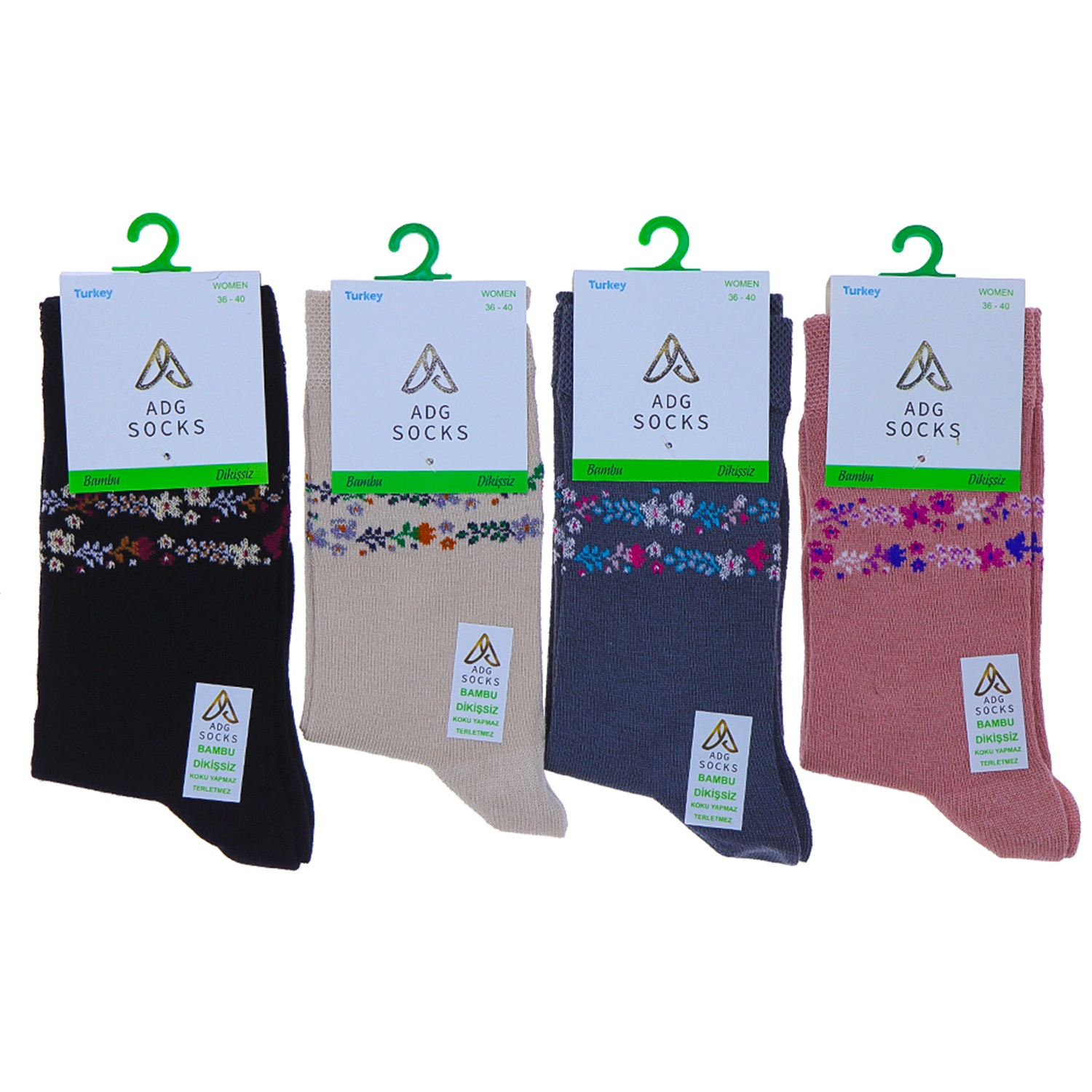 Adg Bayan Bambu Dikişsiz Likralı Desenli Soket Çorap