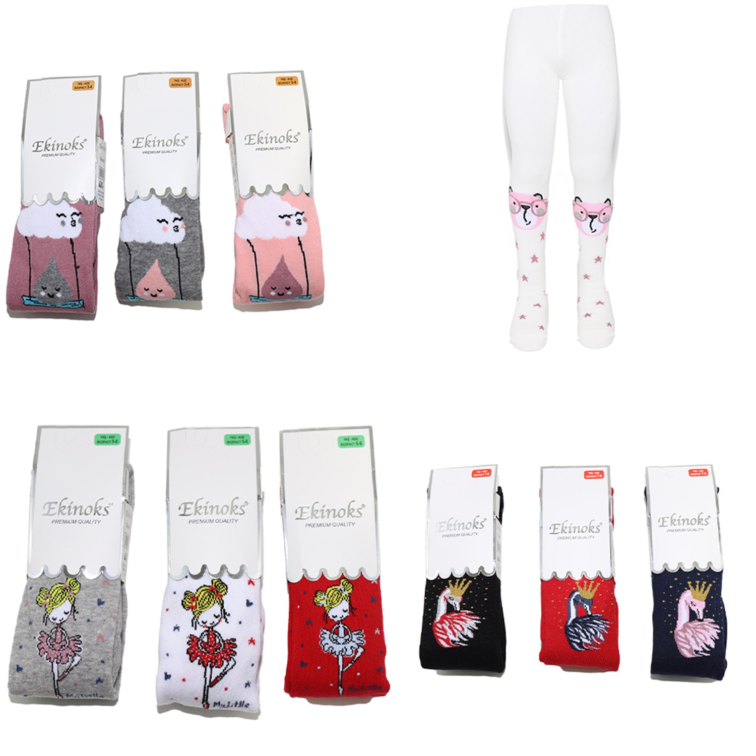 Ekinoks Kız Çocuk Desenli Yıkamalı Parfümlü Mevsimlik Külotlu Çorap