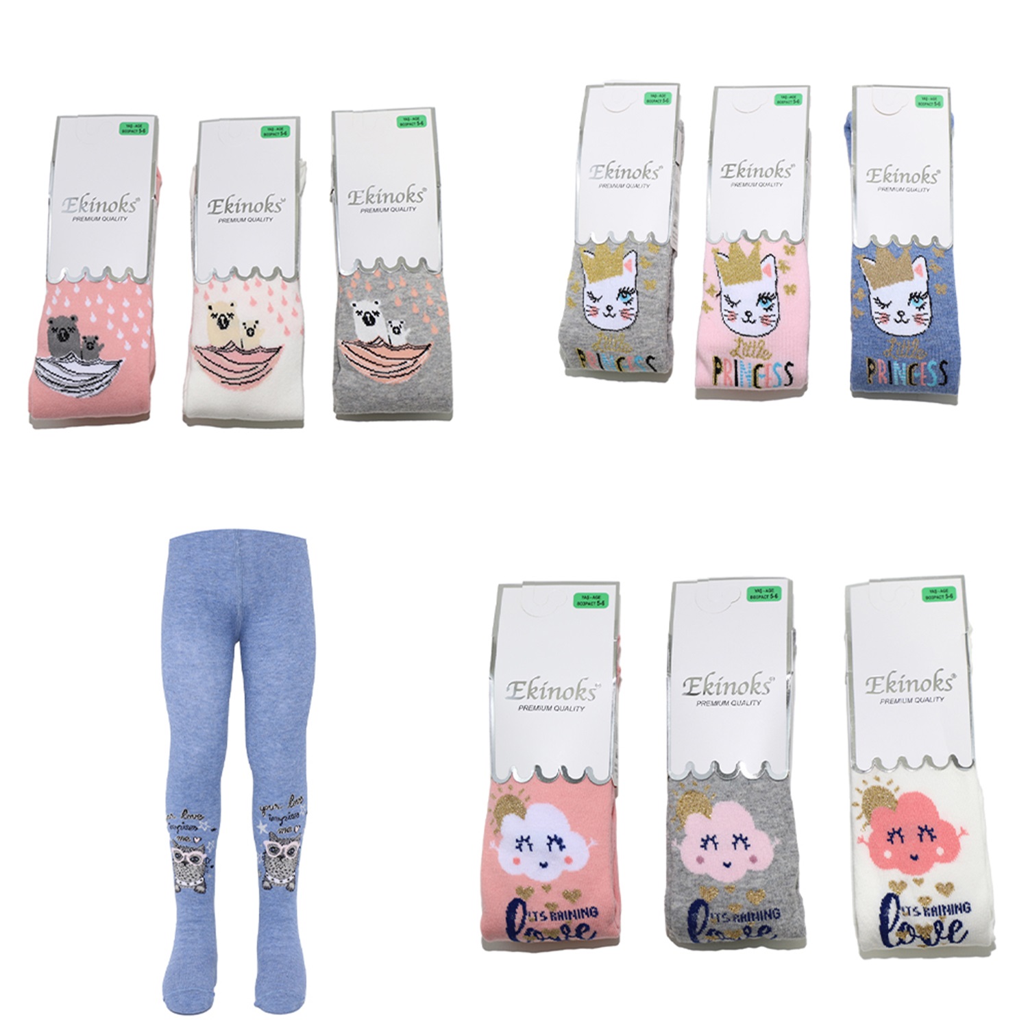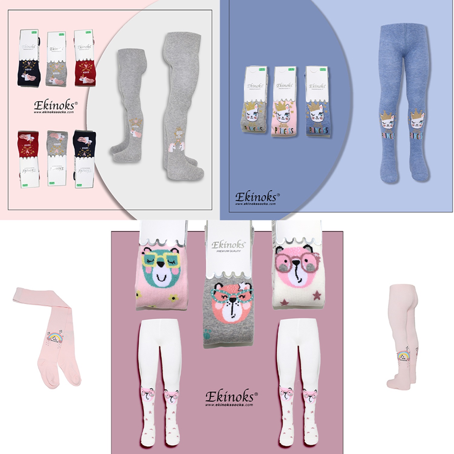 Ekinoks Kız Çocuk Desenli Yıkamalı Parfümlü Mevsimlik Külotlu Çorap - Karışık Renk - 3-4 YAŞ