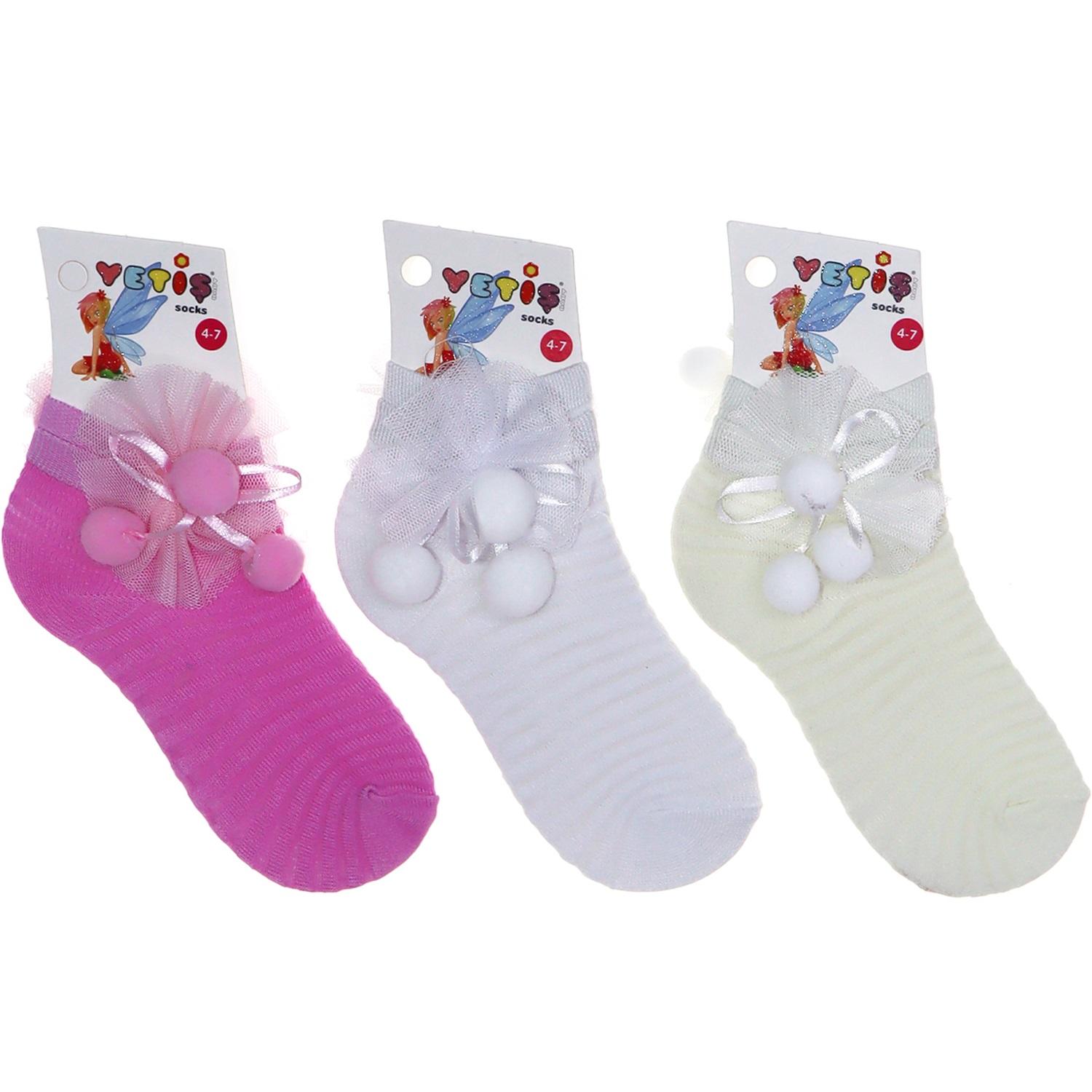 Yetiş Floş Ponponlu Likralı Kız Patik Çorap