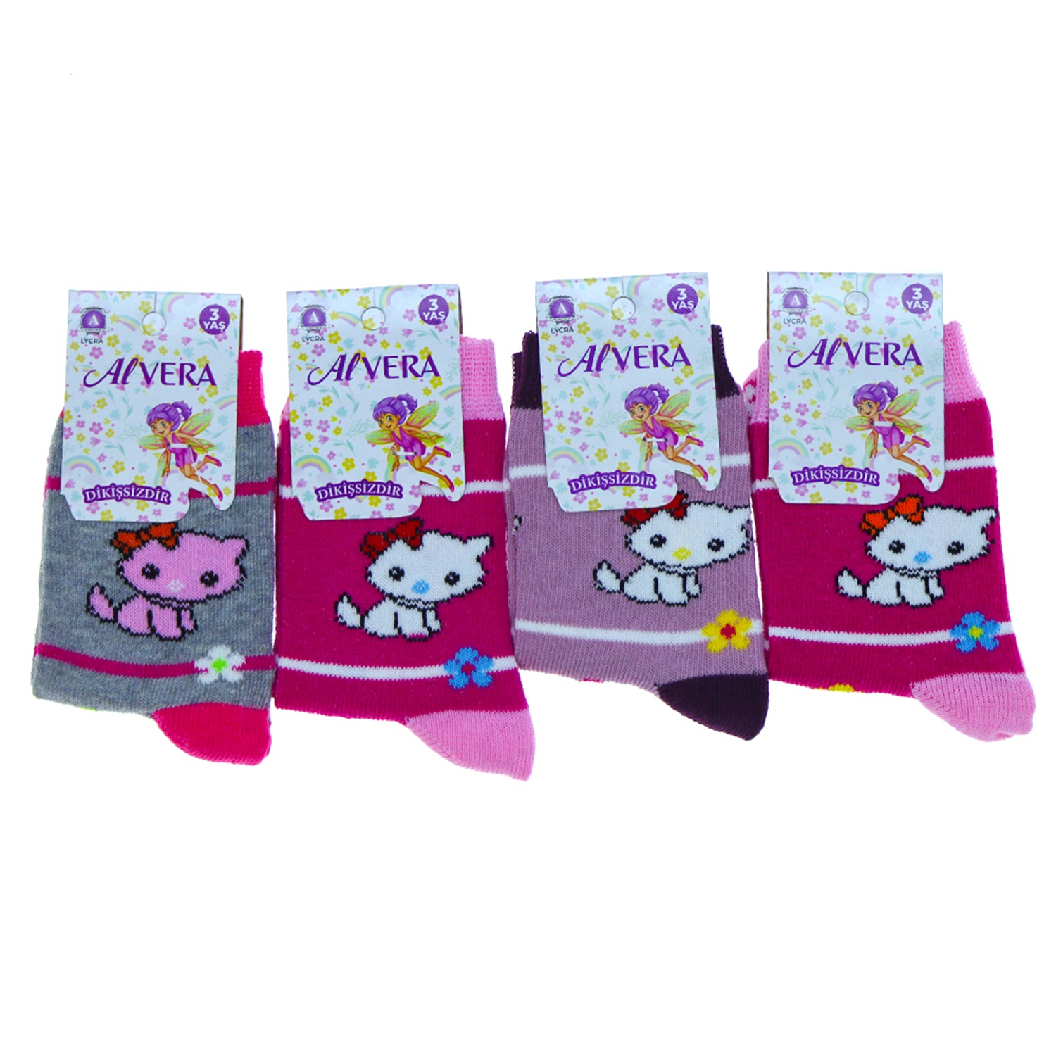 Alvera Kız Çocuk Dikişsiz Desenli Mevsimlik Soket Çorap
