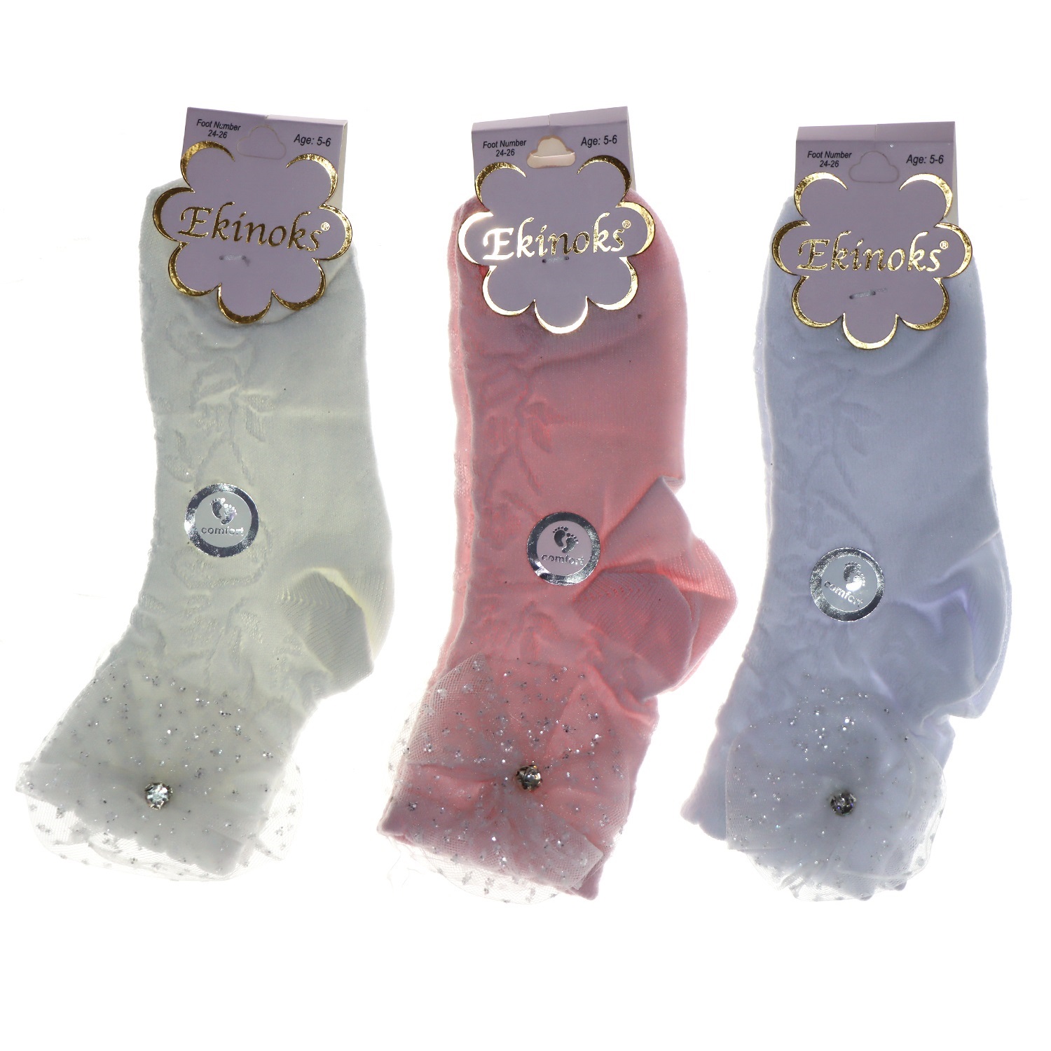 Ekinoks Kız Çocuk Desenli Ve Aksesuarlı Soket Çorap- Karışık Renk - 5-6 YAŞ