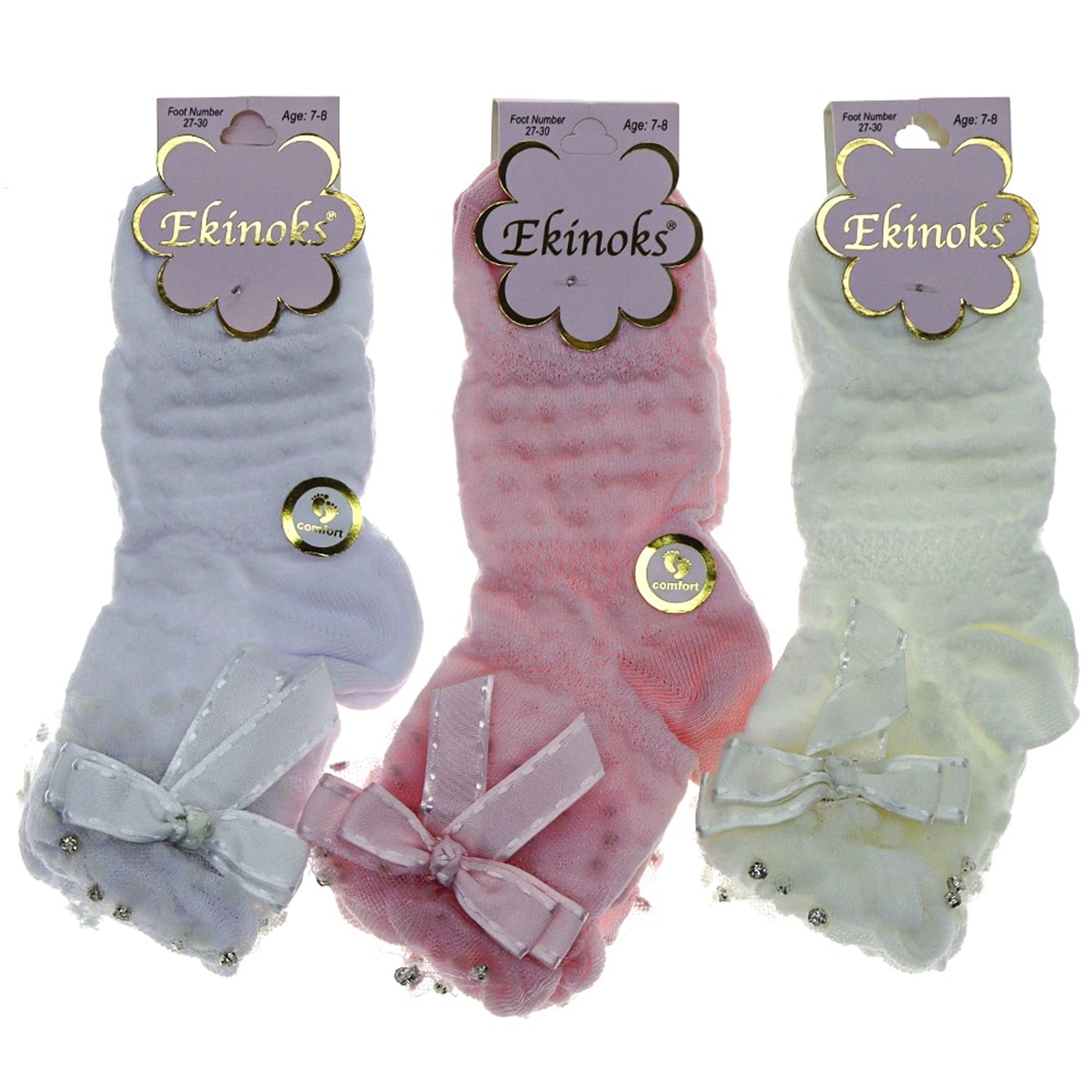 Ekinoks Kız Çocuk Desenli Ve Aksesuarlı Soket Çorap- Karışık Renk - 7-8 YAŞ