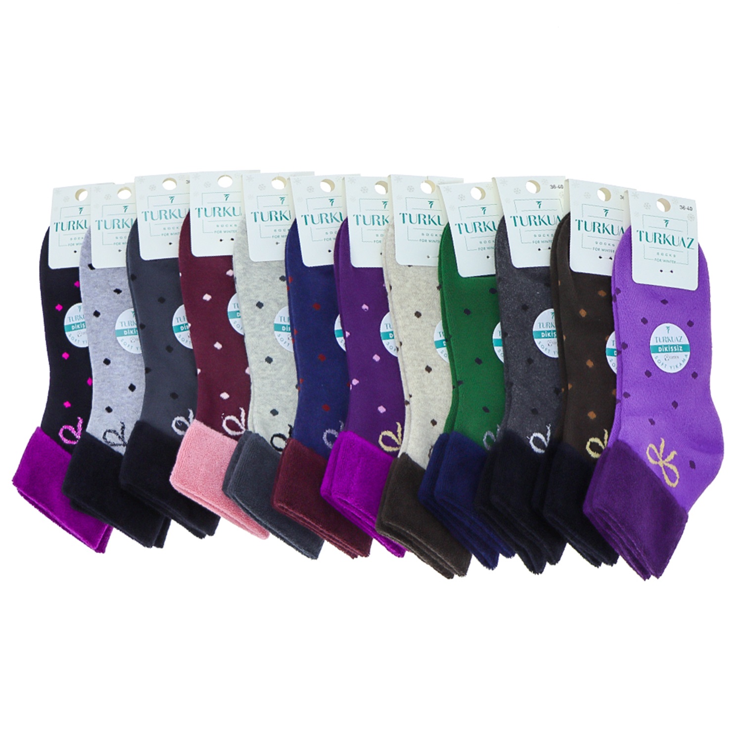 Turkuaz 2025 Bayan Penye Kıvrık Dikişsiz Soft Yıkamalı Havlu Soket Çorap