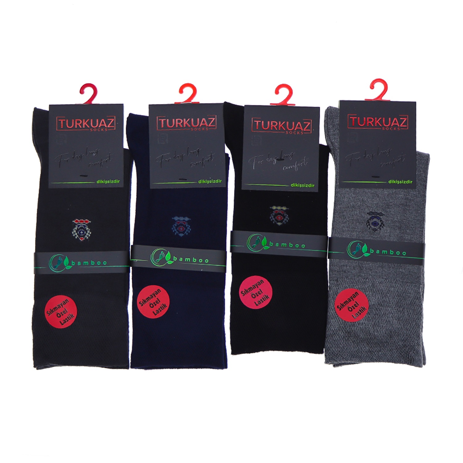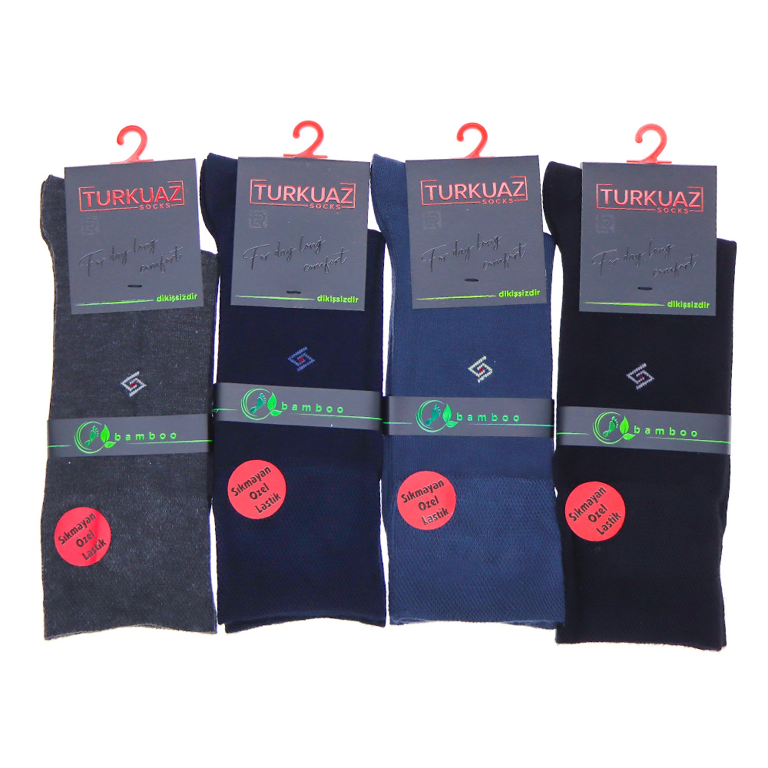 Turkuaz Erkek Bambu Dikişsiz Likralı Kutulu Soket Çorap