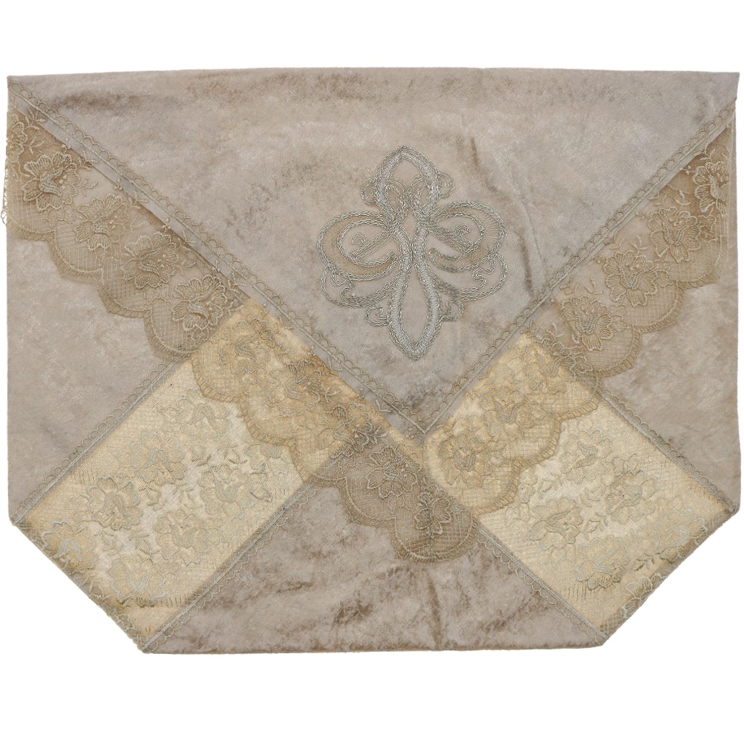 ÖFG Kadife İncili Kenar Güpürlü Zambak Zarf Bohça
