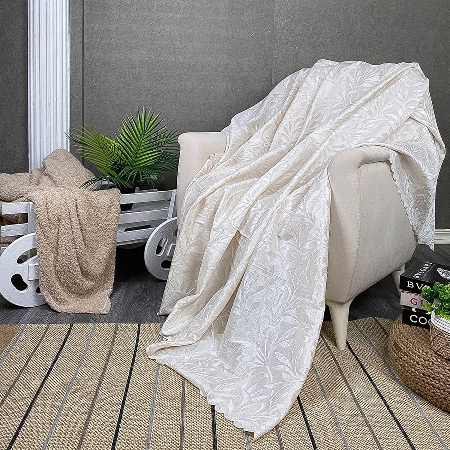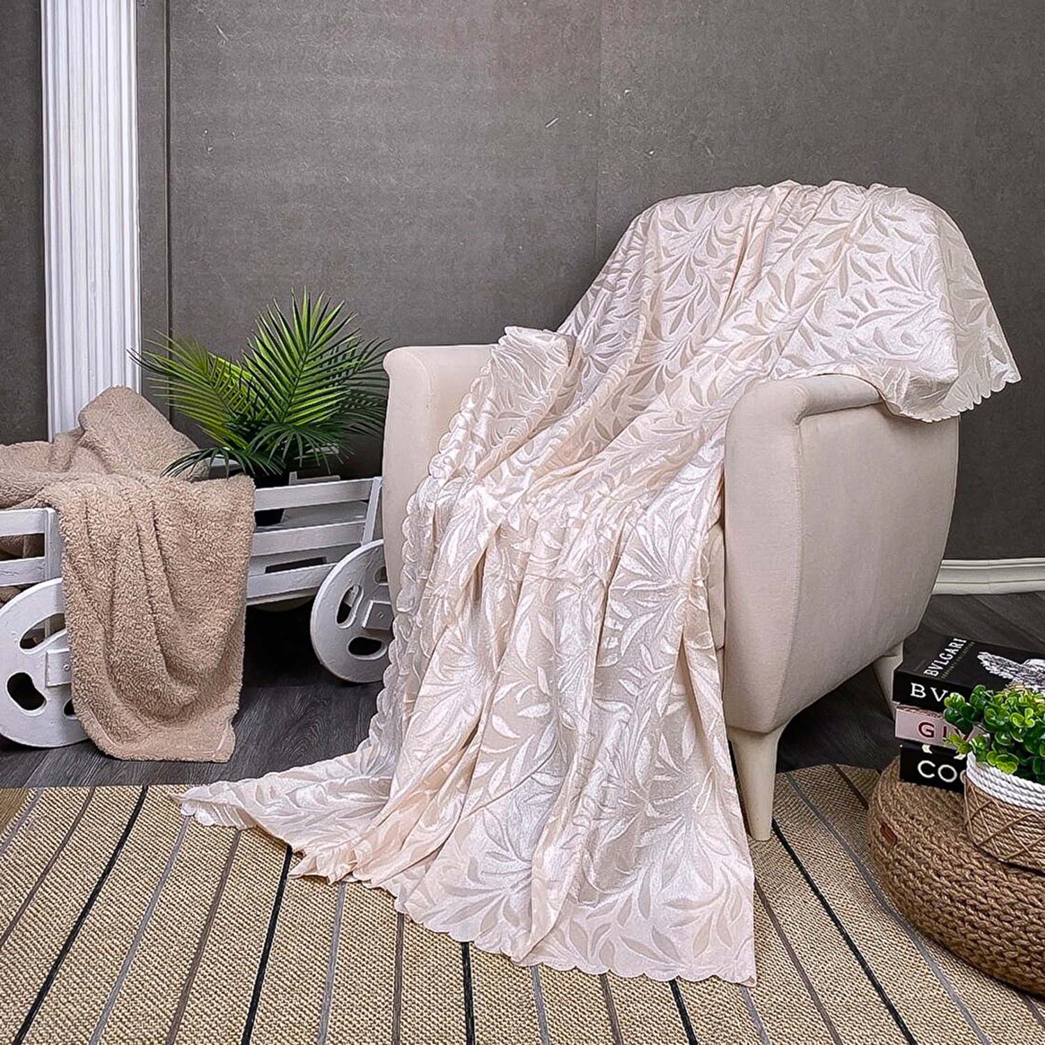 Evneşe Tay Tüyü Akasya Koltuk Kanepe Örtüsü 160x200cm - Füme - 160X200