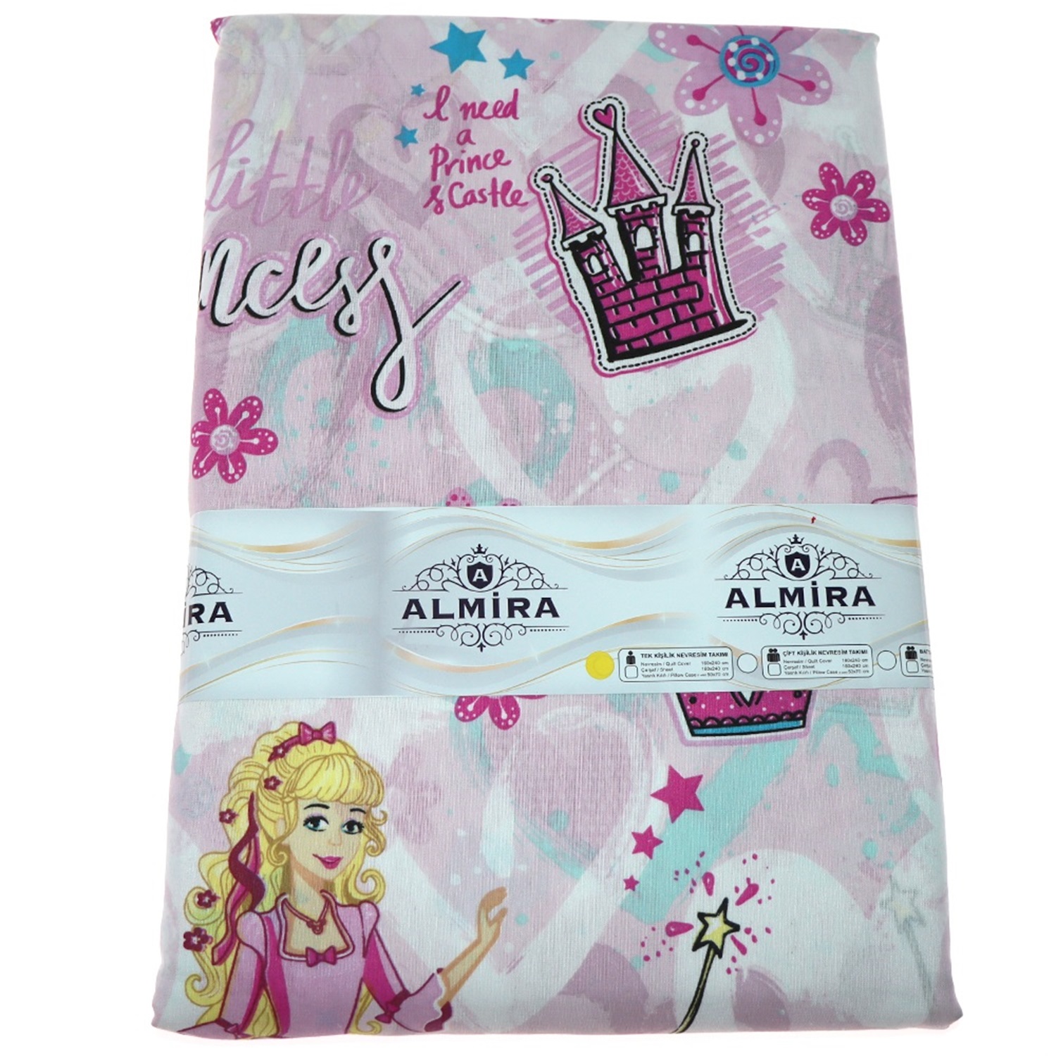 Almira Kız Çocuk Kutulu Tek kişilik Baskılı Nevresim Takımı 160x240 cm