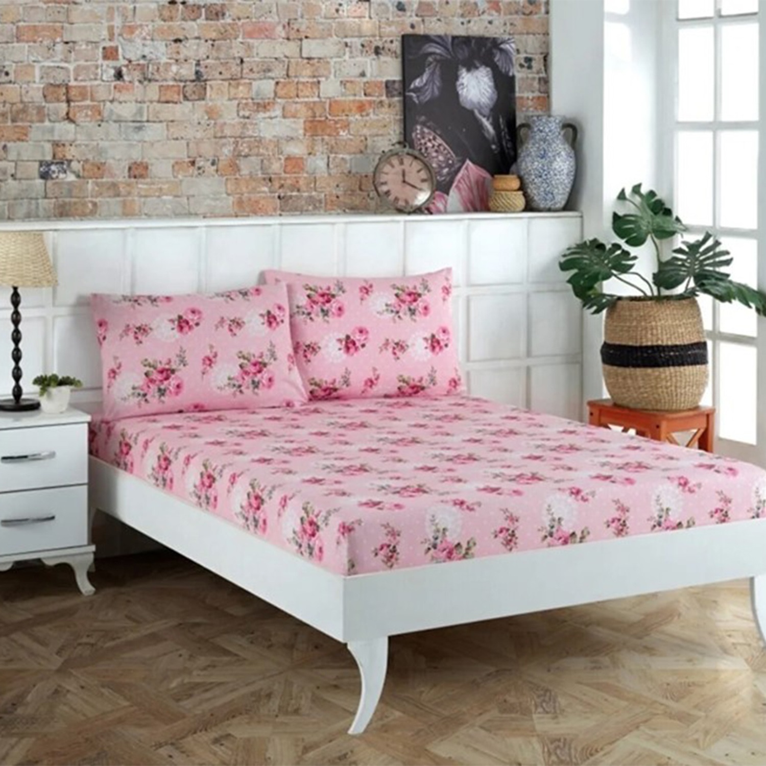 Baktıroğlu Tekstil Çarşaf Desenli Lastikli Yastık Kılıflı Çift Kişilik 180x220