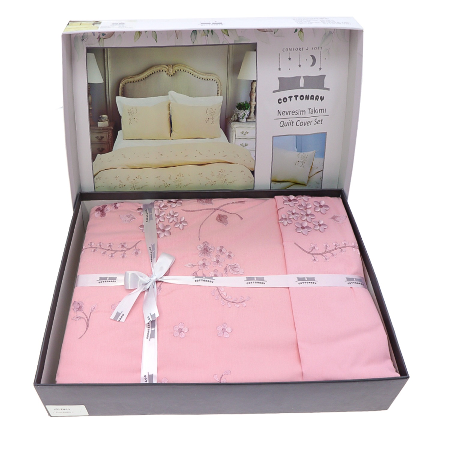 Cottonary Cotton Nakışlı Çift Kişilik Kutulu Nevresim Takımı 200X220 Cm