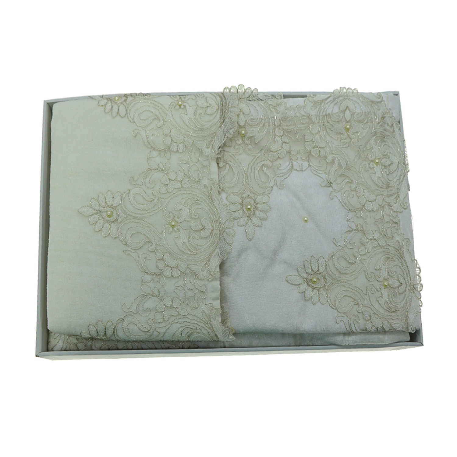 Haviland Çeyizlik Kadife Kutulu Güpürlü Bohça Seccade Seti 4 Parça