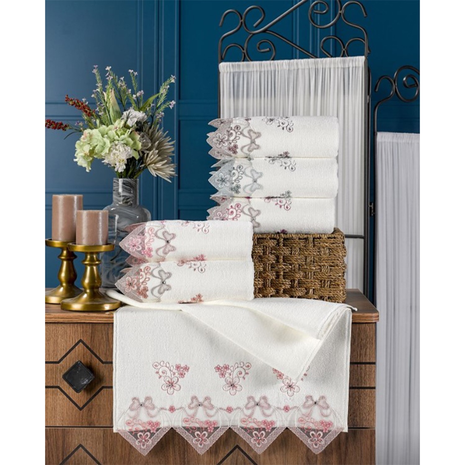Durul 944 Thereedy Kadife Elis Nakışlı El Yüz Havlusu 50x90