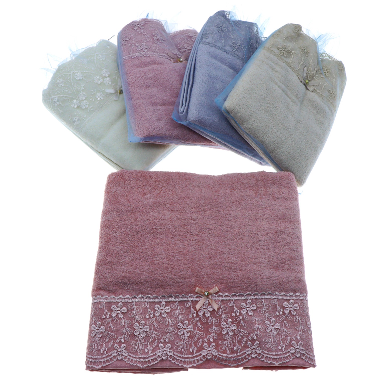 Villa Keseli Kurdela Taşlı Dantelli El Yüz Havlusu 90X50