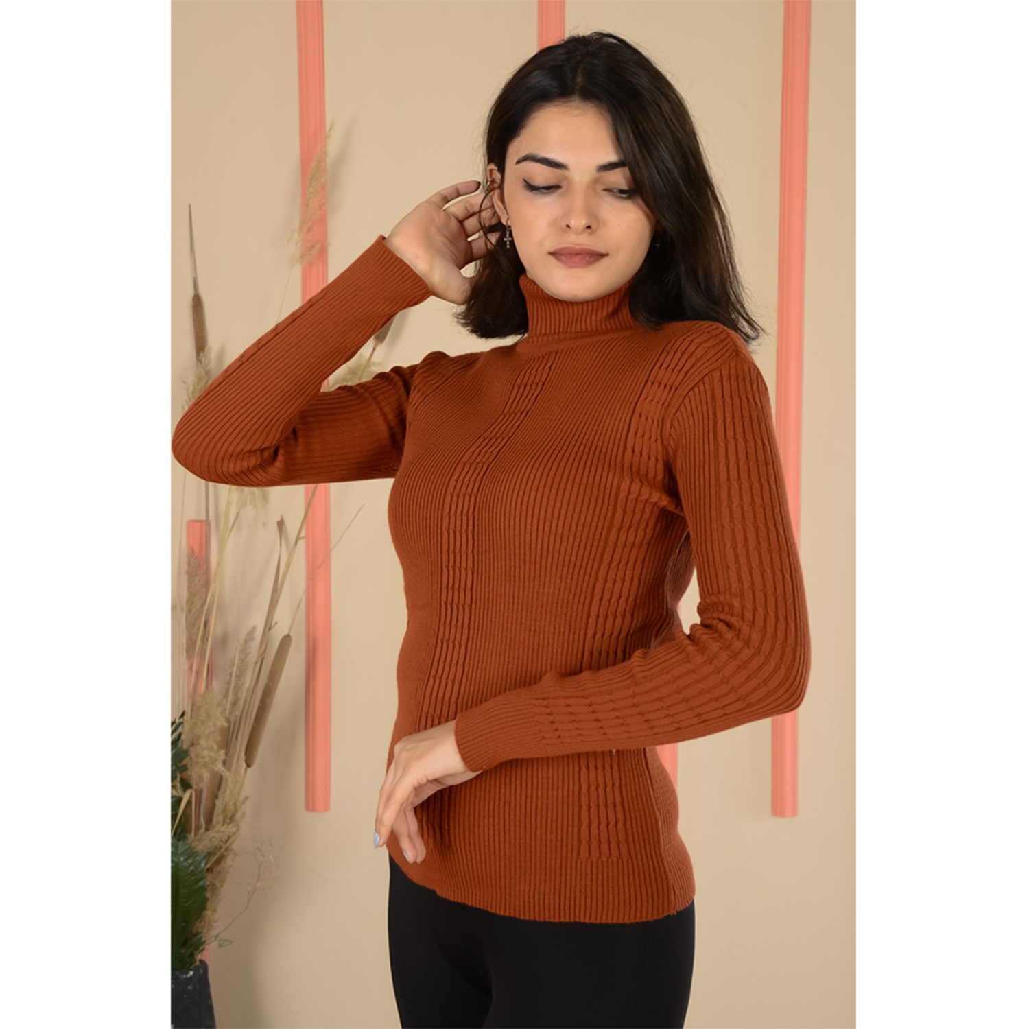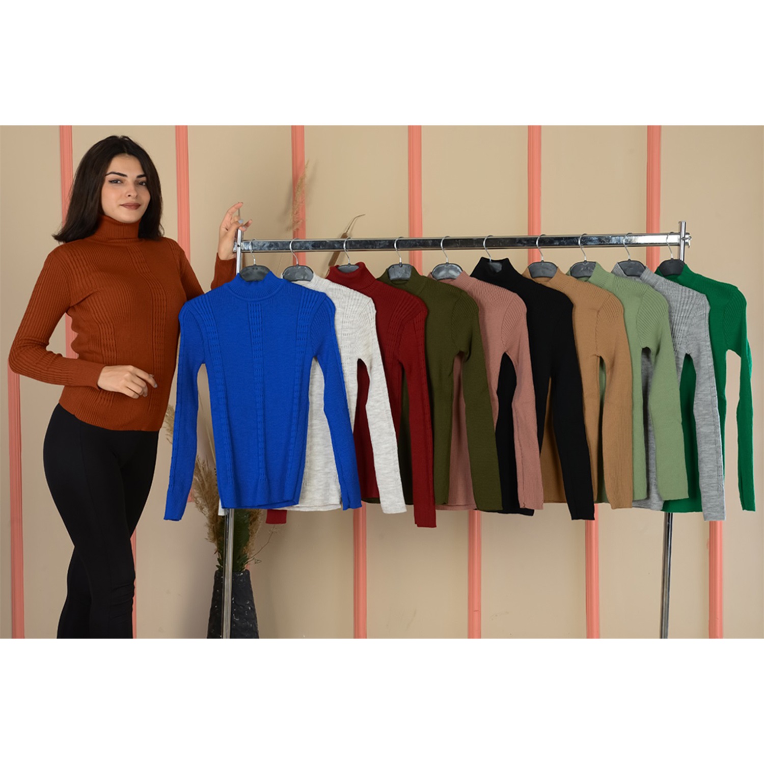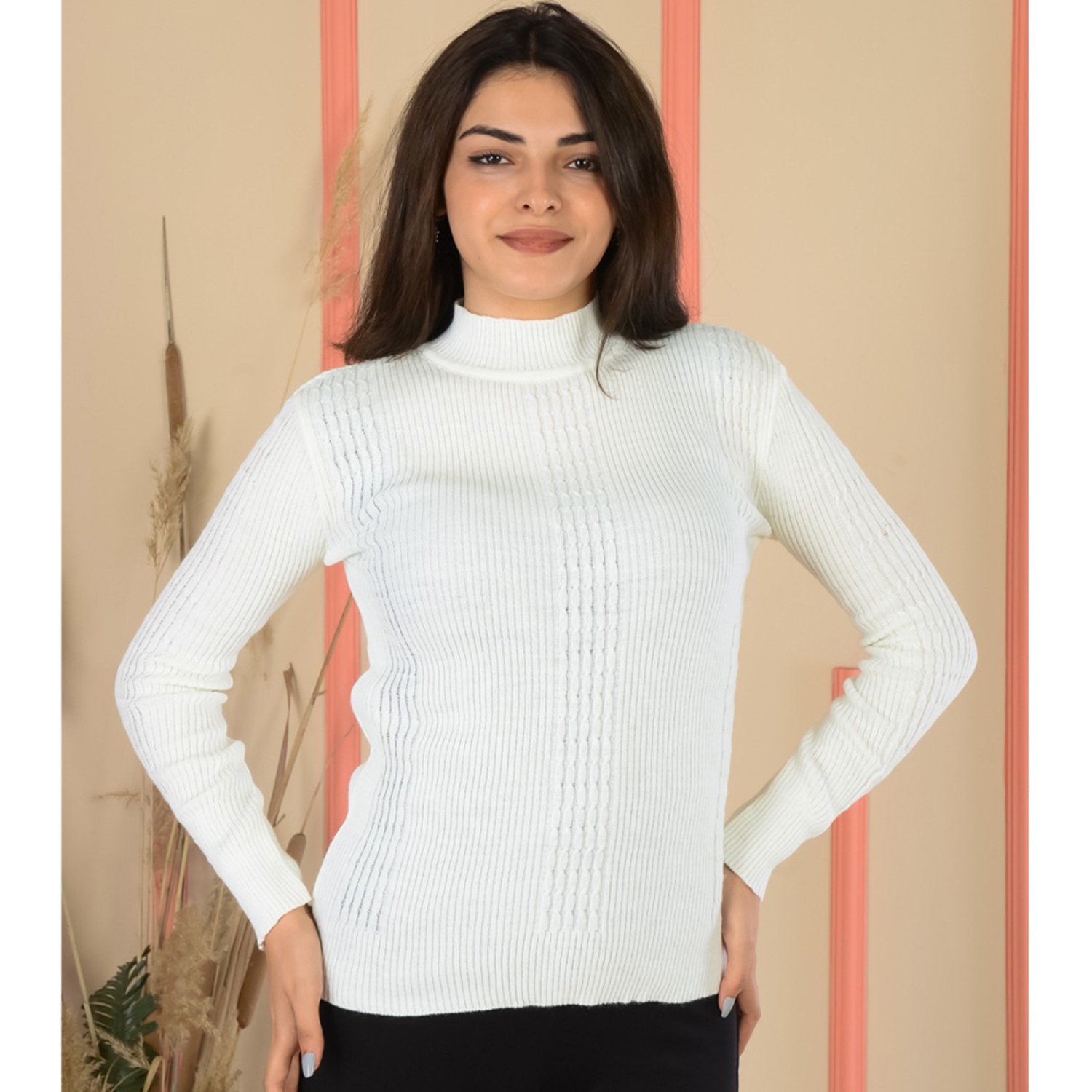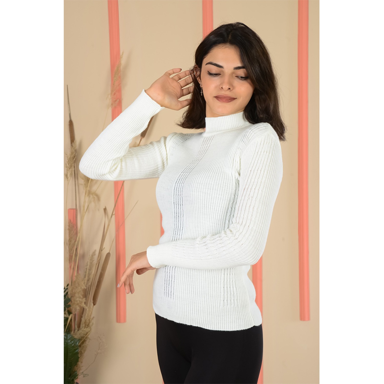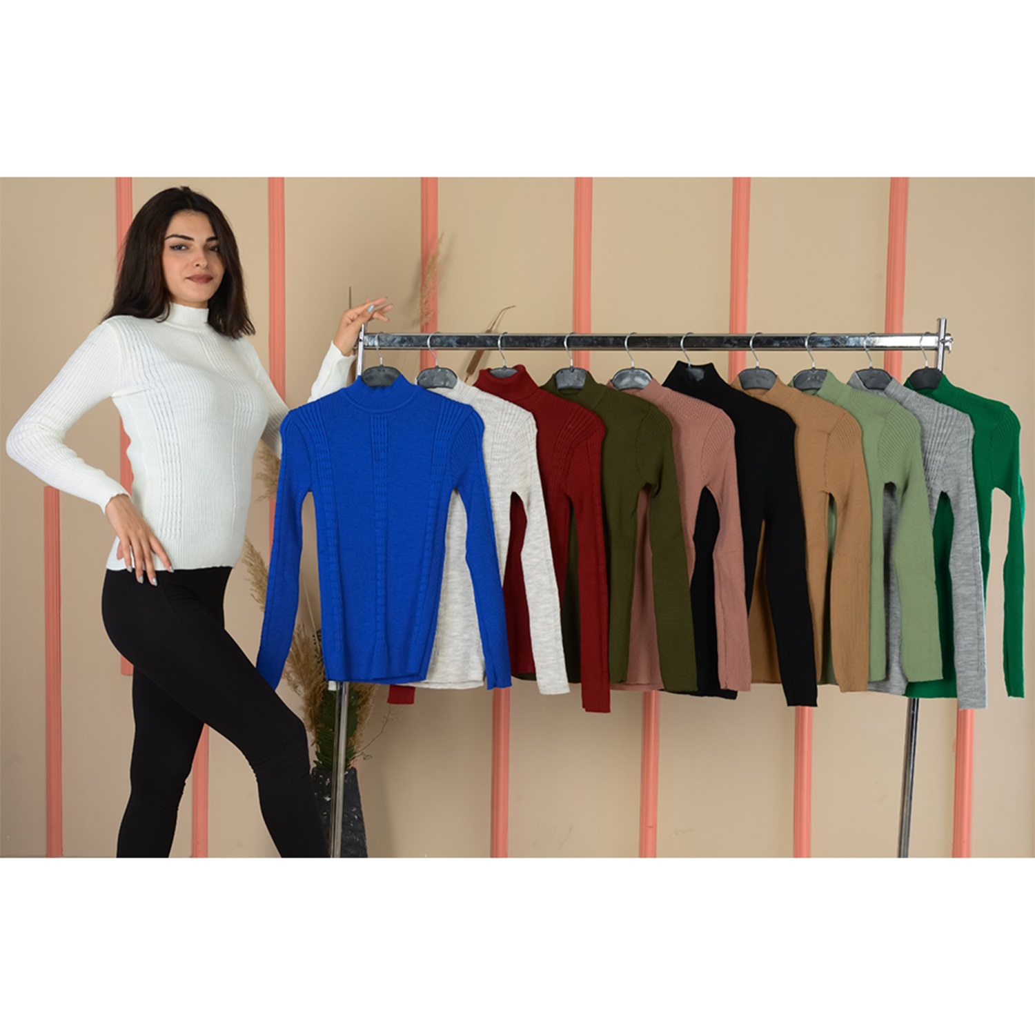 Buğra Bayan Triko Likralı Kabartma Desenli Boğazlı 3 Lü Badi