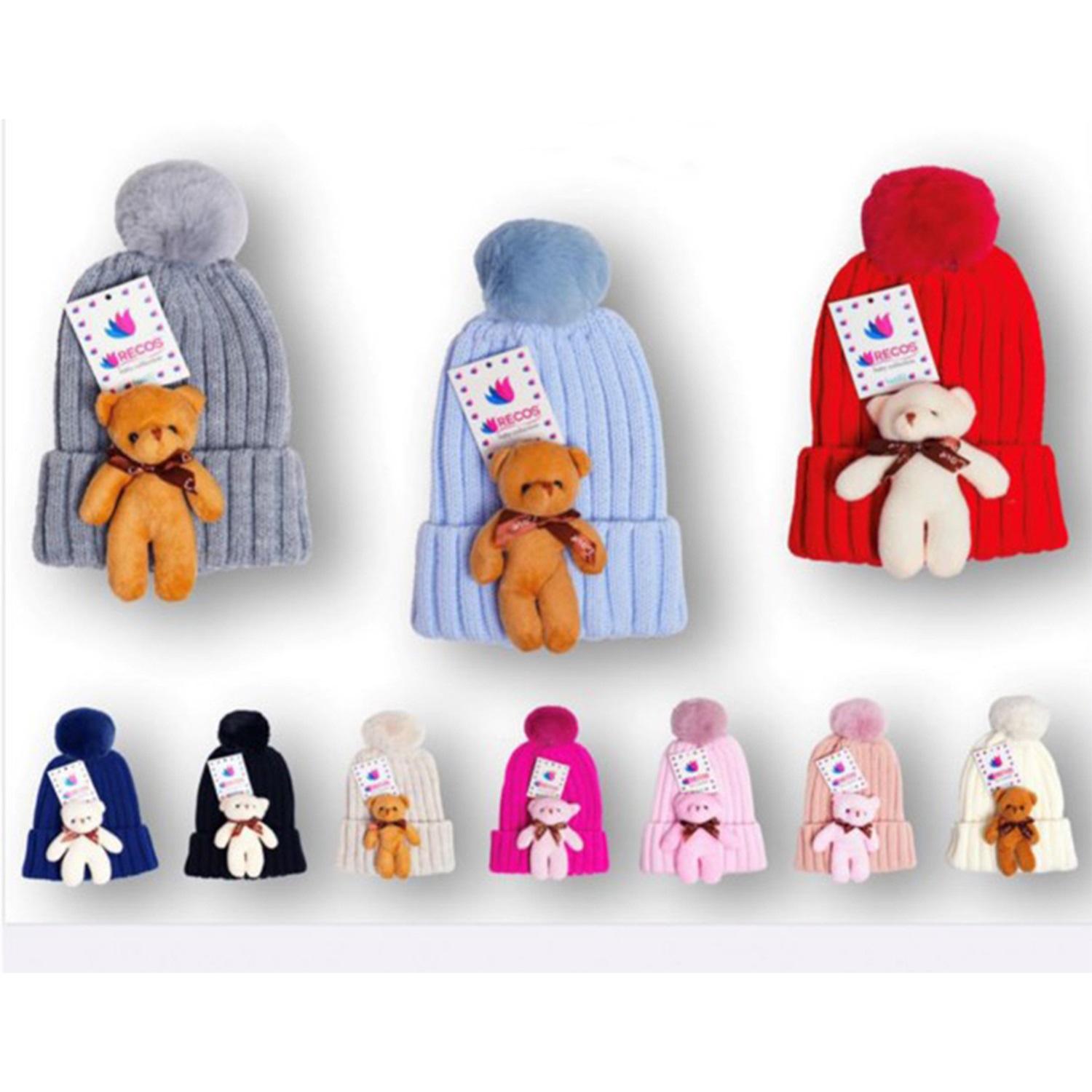 Recos 2057 Triko Fitilli Ayıcıklı Ponponlu Bere 4-8 Yaş