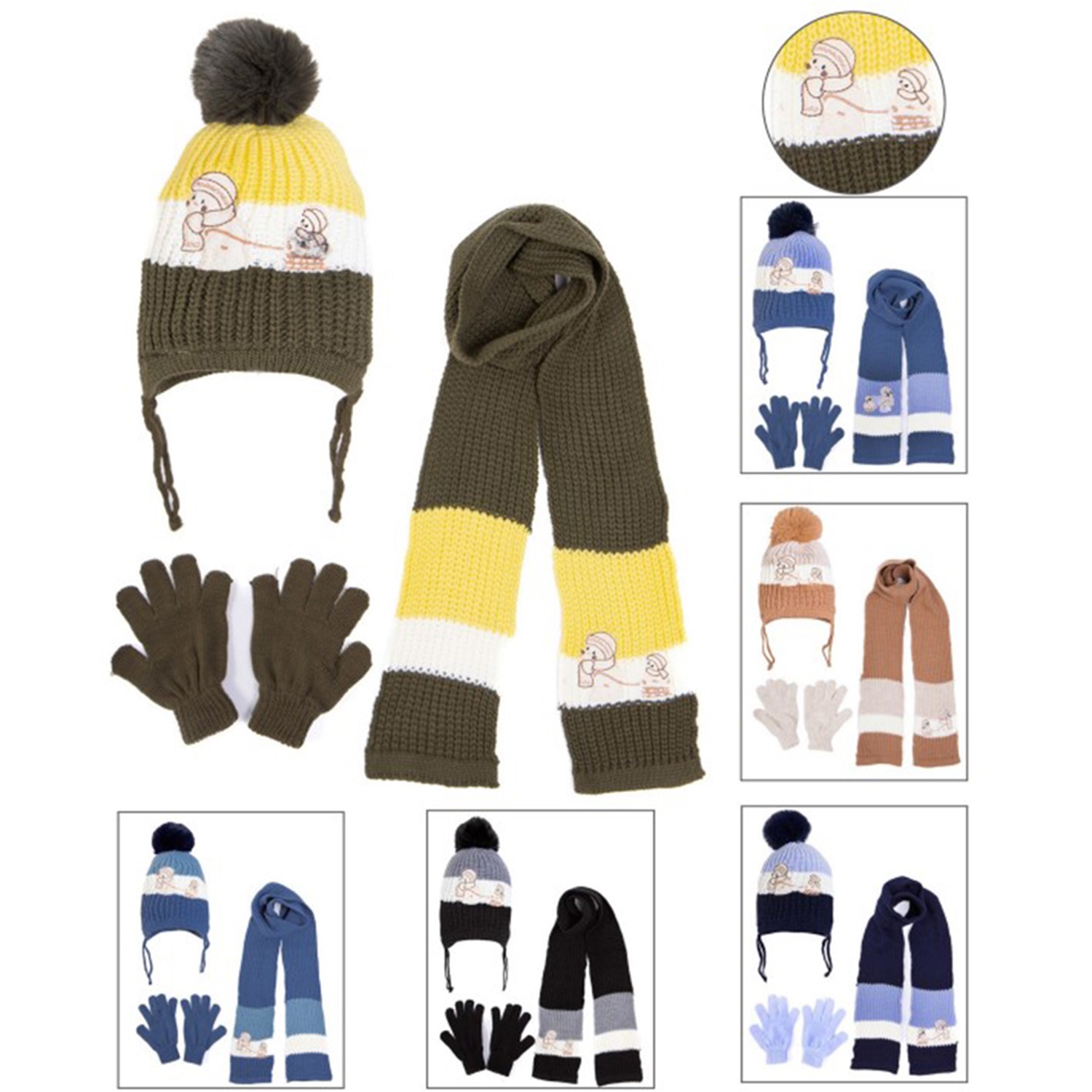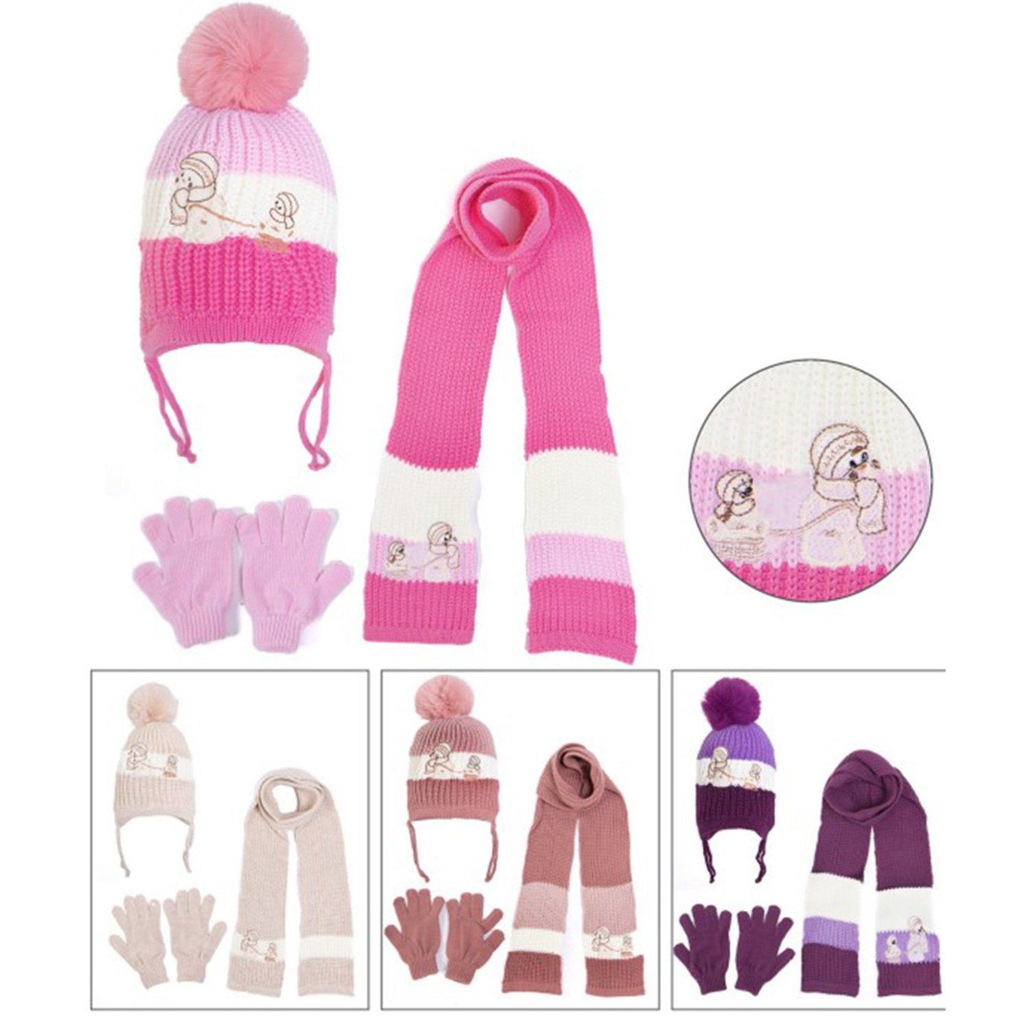 Recos Çocuk Triko Kardan Adam Nakışlı Ponponlu Atkı Bere Eldiven 3 Lü Takım 4-8 Yaş