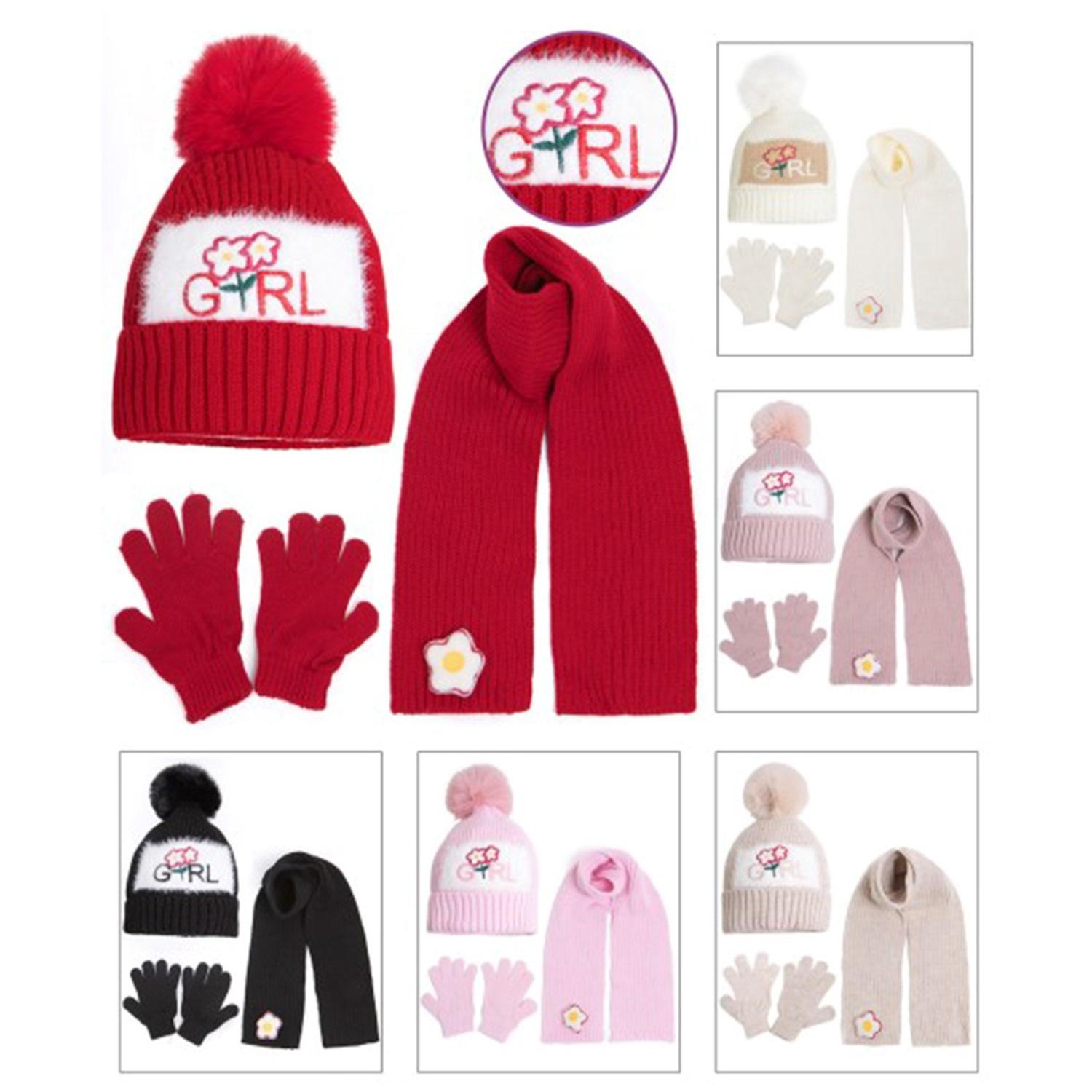 Recos Kız Çocuk 1679 Triko İçi Polarlı Gırl Nakışlı Ponponlu Atkı Bere Eldiven 3 Lü Takım 1-4 Yaş