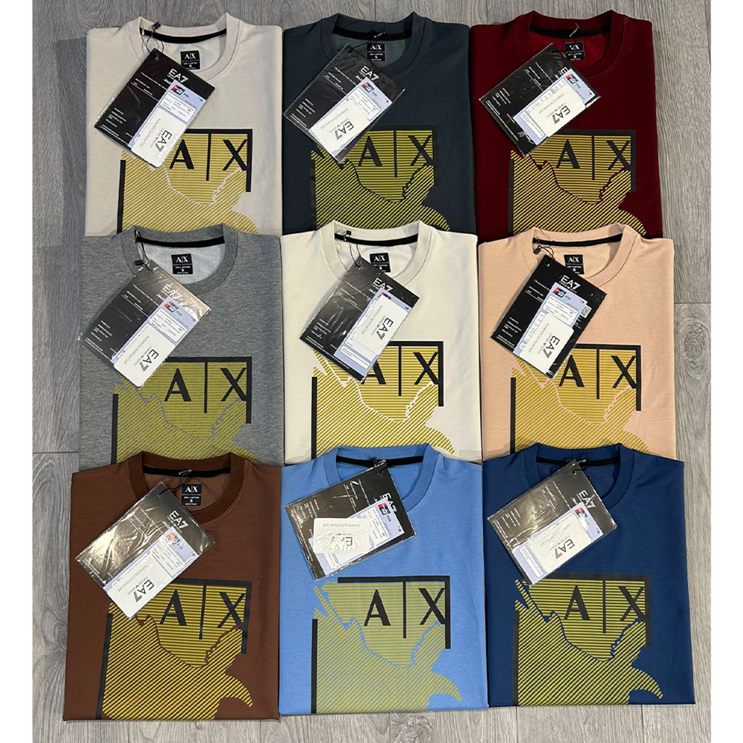 Farfetch SW-243 Erkek Kompak Penye AX Baskılı Sıfır Yaka Sweat S-2XL - Mavi - S-M-L-XL-2XL