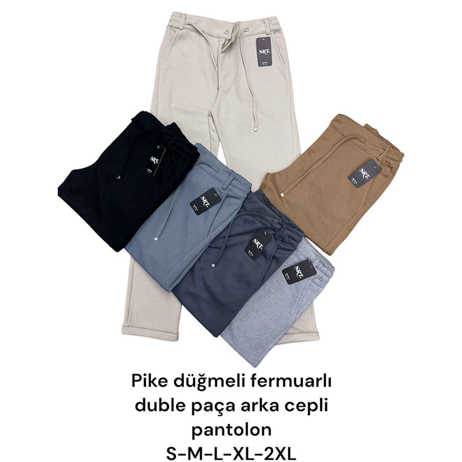 Srt D 2331 Erkek Battal Diagonel Düğmeli Dar Duble Paça Pantolon 1XL-5XL (5 Li)