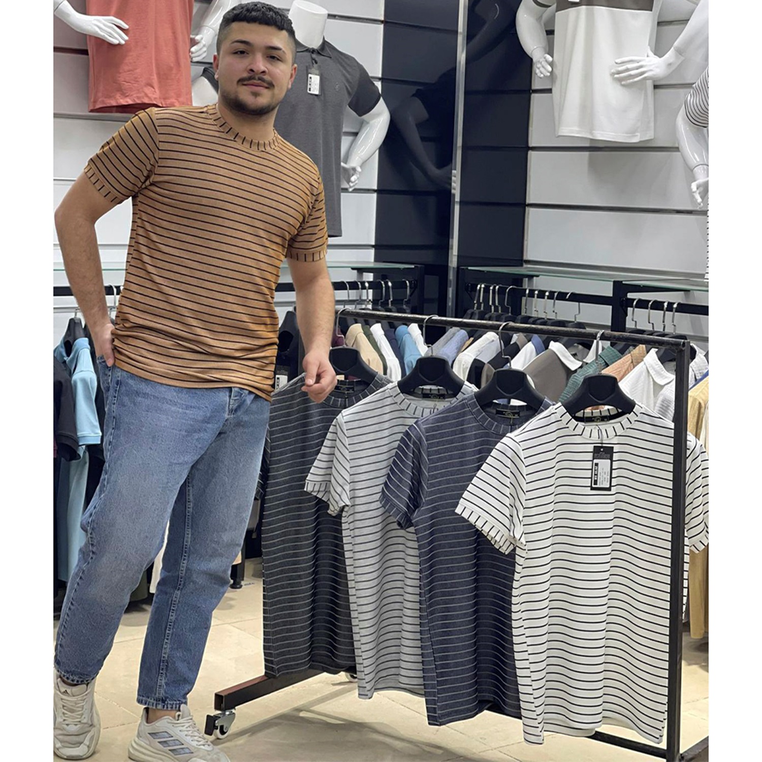 By Alaz 422 Erkek Jakar Kumaş Çizgili Simit Yakalı Tişört S-2XL