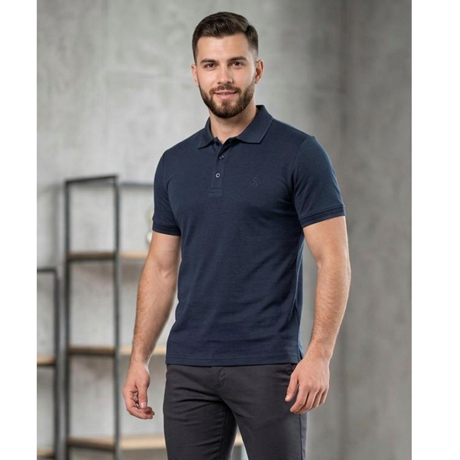 By Alaz 525 Erkek Kağı Kumaş Nakışlı Yakalı Düğmeli Tişört S-2XL