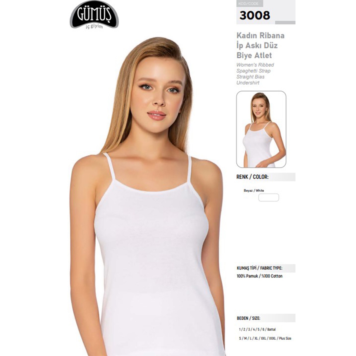 Gümüş 3008 Bayan İp Askı Düz Biyeli Atlet - Beyaz - BATTAL