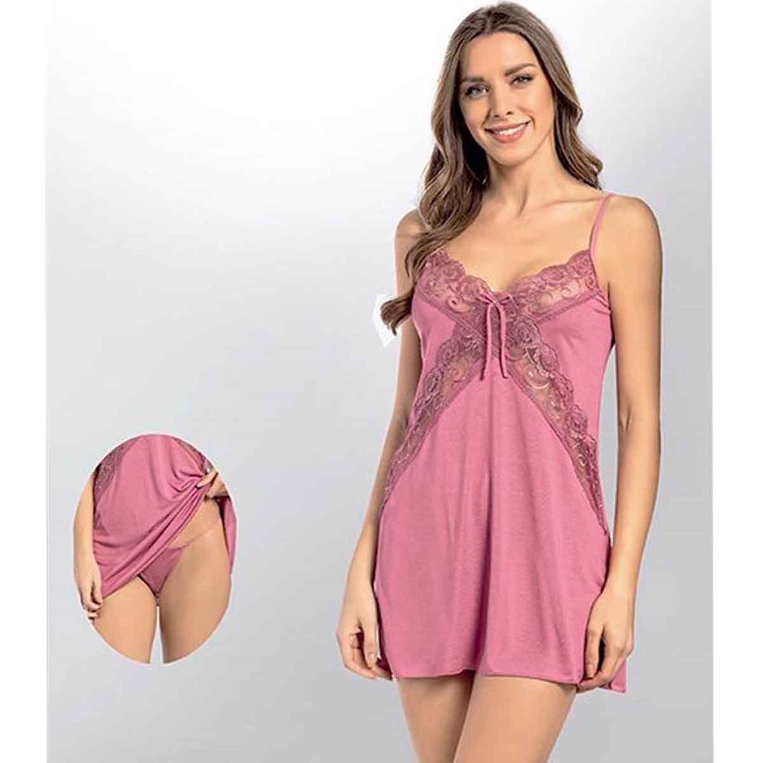 6207 Kota Bayan Likralı Penye Danteli Gecelik