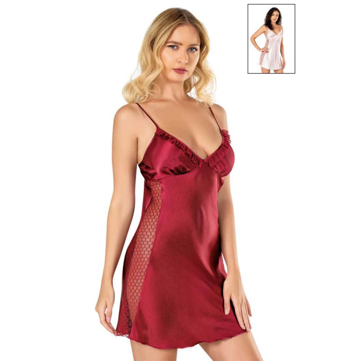 Primoda 8105 Bayan Saten Dantelli Kısa Gecelik - 40660-Pembe-L