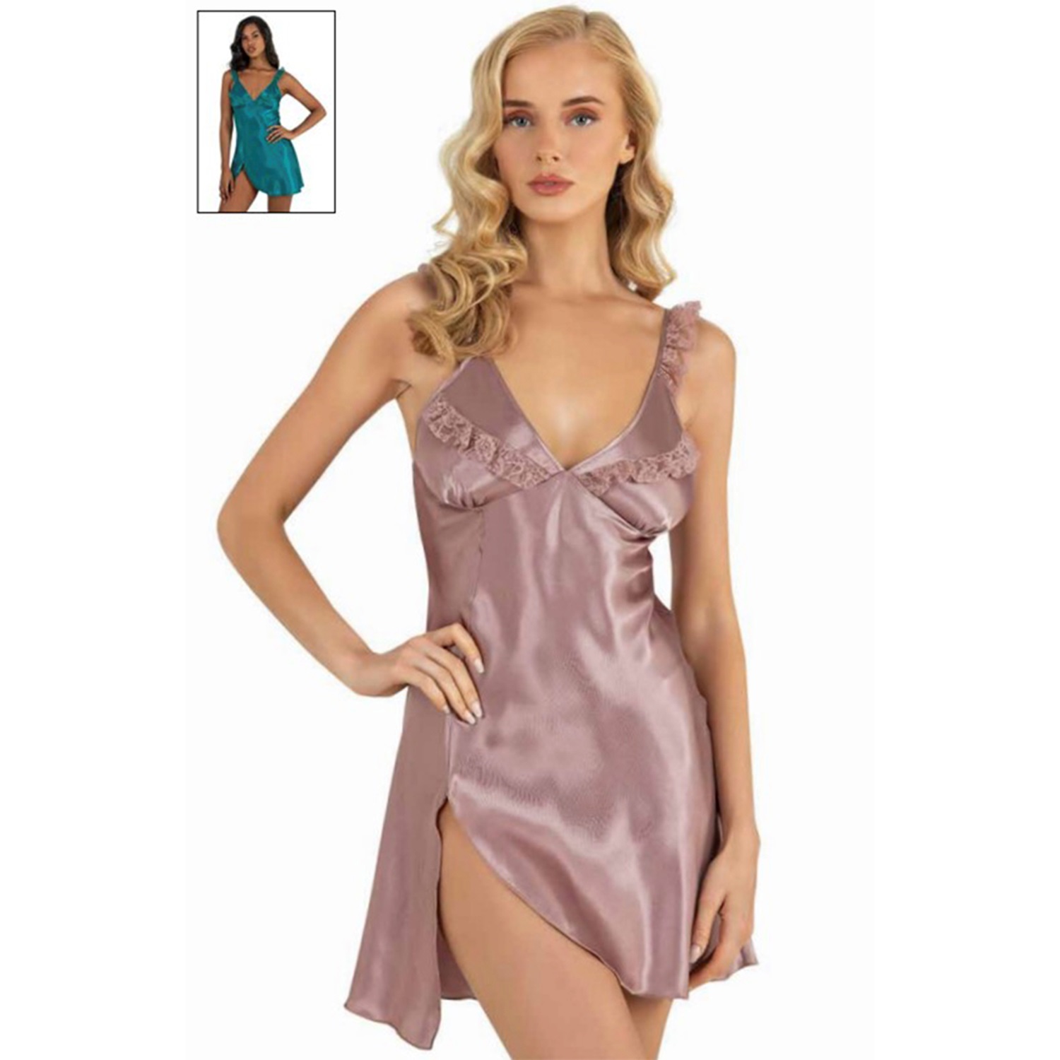 Primoda 8237 Bayan Saten Dantelli Kısa Gecelik