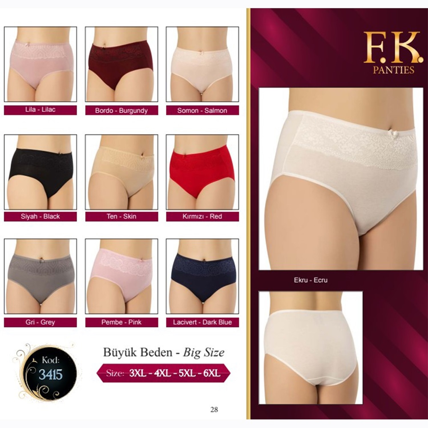 F-K 3415 Bayan Dantel Detaylı Penye Big Size Külot