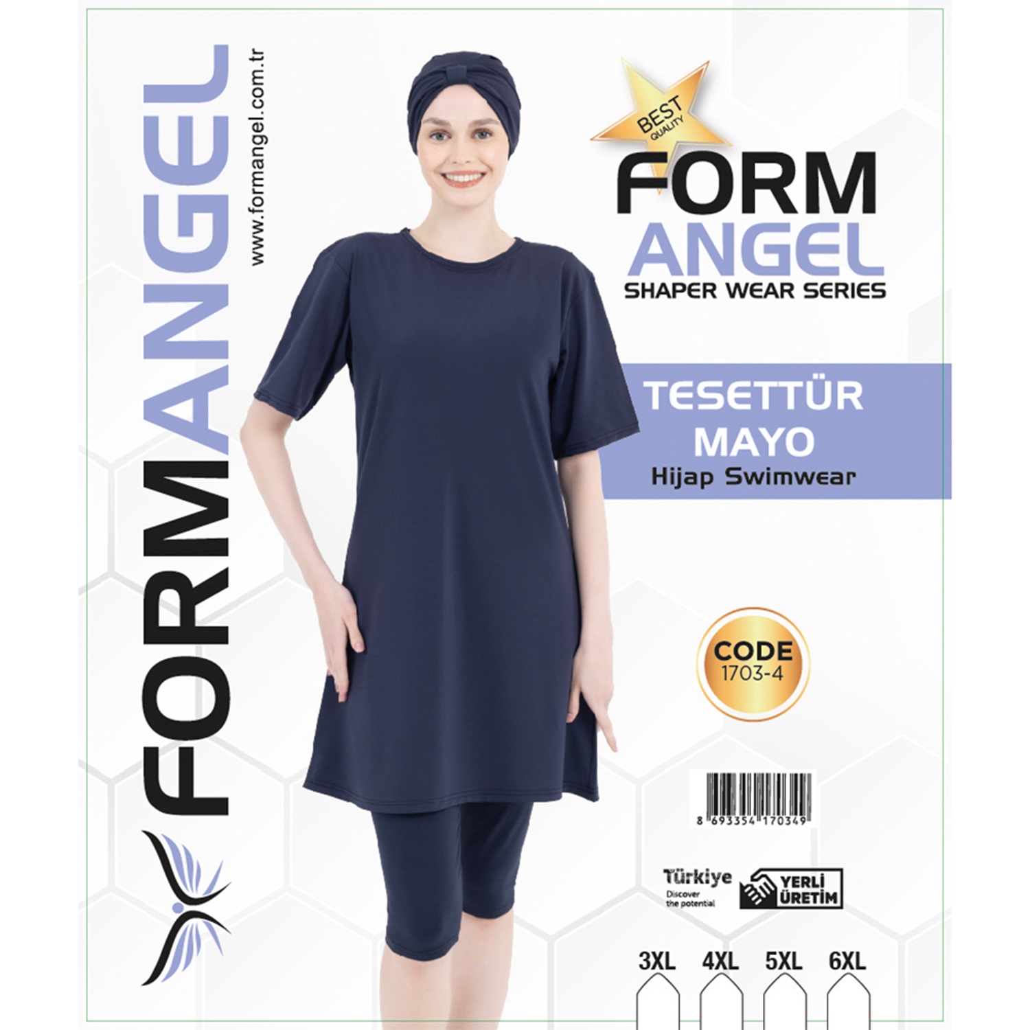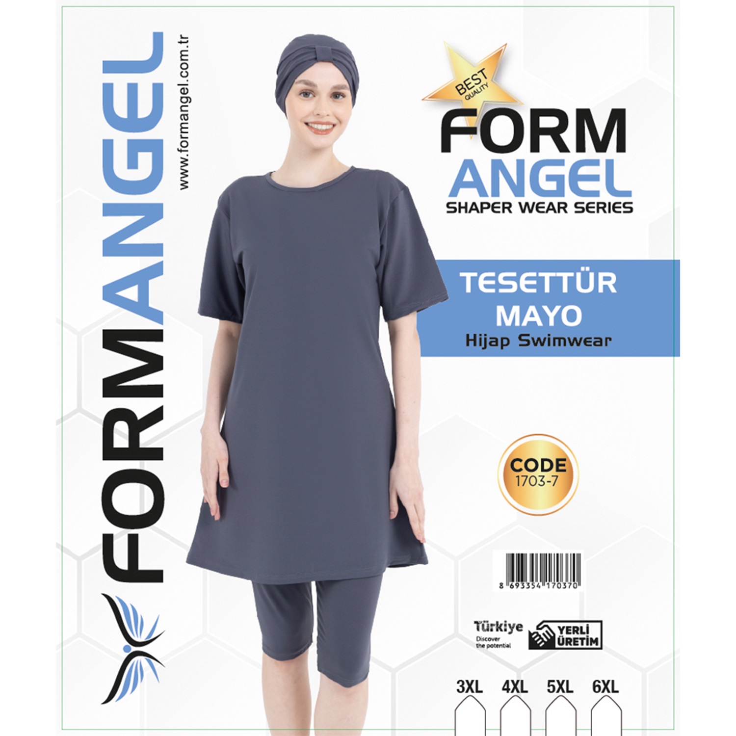 Form Angel 1703 Kadın Battal Kısa Kollu Likralı Düz Renk Tesettür Mayo 3XL-6XL - Karışık Renk - 3XL-4XL-5XL-6XL